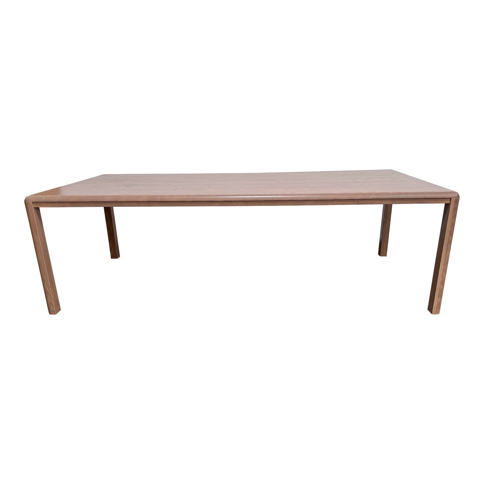 Design Plus Gallery presents a Custom Table. This dining table embodies a sophisticated and refined aesthetic, making it the perfect centerpiece for any dining room. The warm tones of the ash wood add a touch of natural beauty to the space. Its versatile design allows it to seamlessly blend in with a variety of decor styles, whether it be traditional, modern, or transitional. Gather around this exquisite table with family and friends, and create lasting memories in style and comfort. The table has a slight minor wobble when shaken. In good condition, minimal wear. Made in North Carolina, USA.