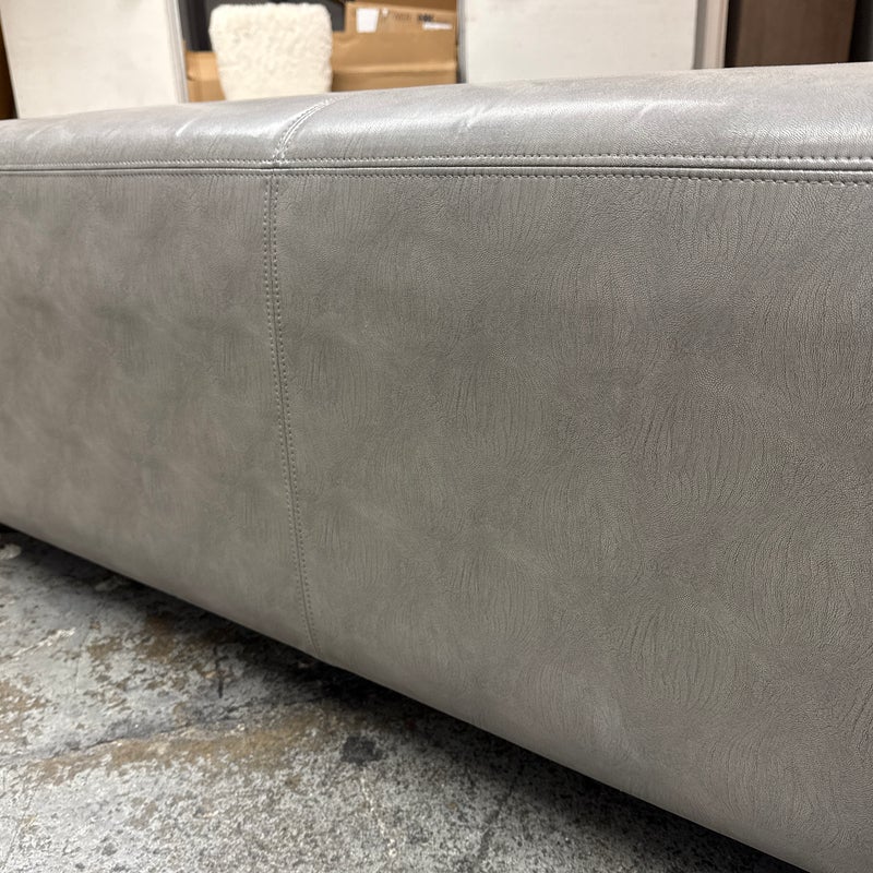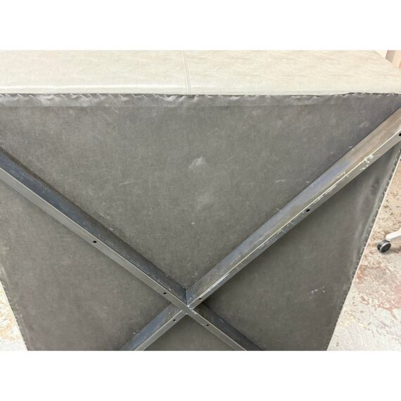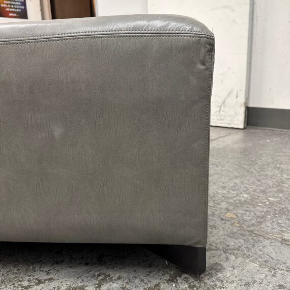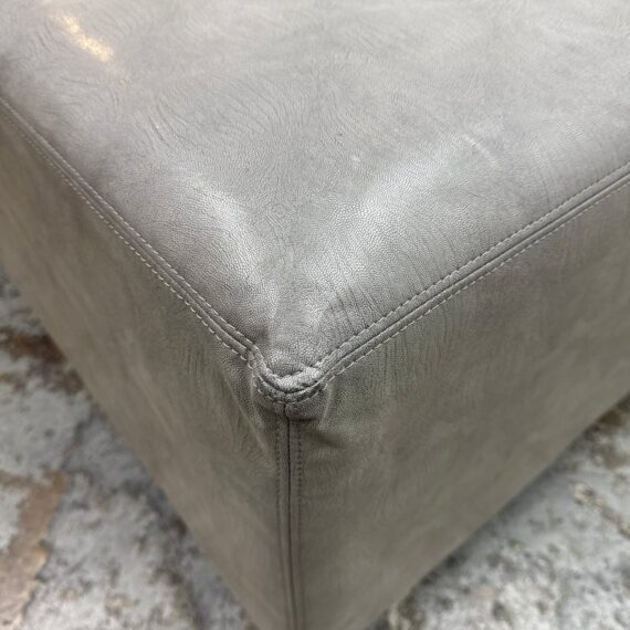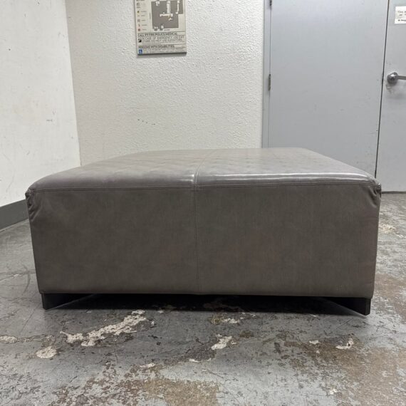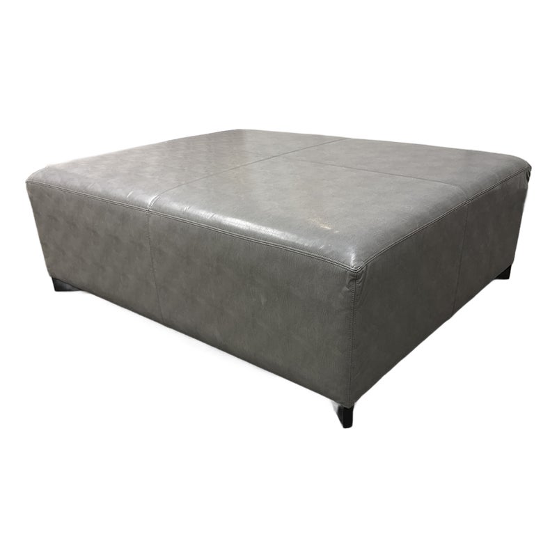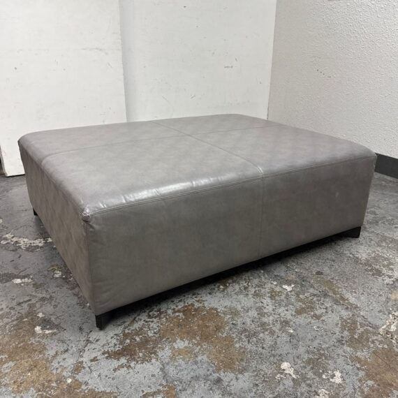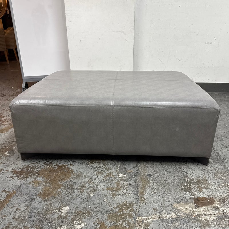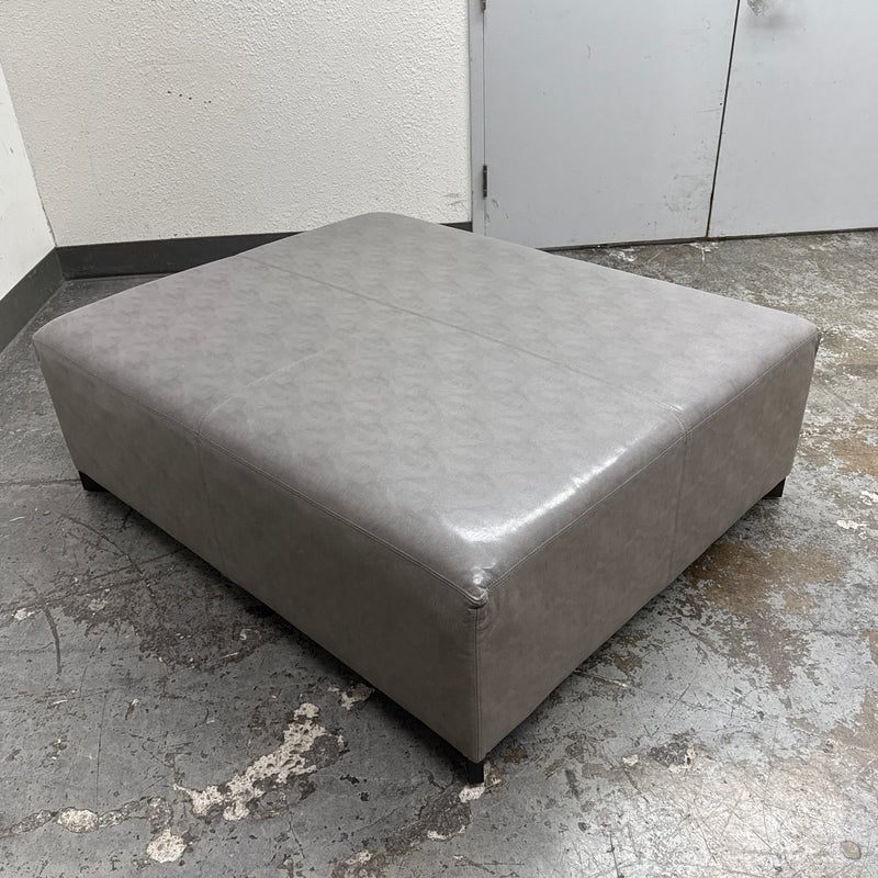 Design Plus Gallery presents a Faux Leather Ottoman of Custom Design. The ottoman is large and will double for comfortable extra seating when guests come to visit. The large surface area will also allow for excellent design space in the living room with the addition of a tray table atop. Is in good condition for its usage with minimal wear.
