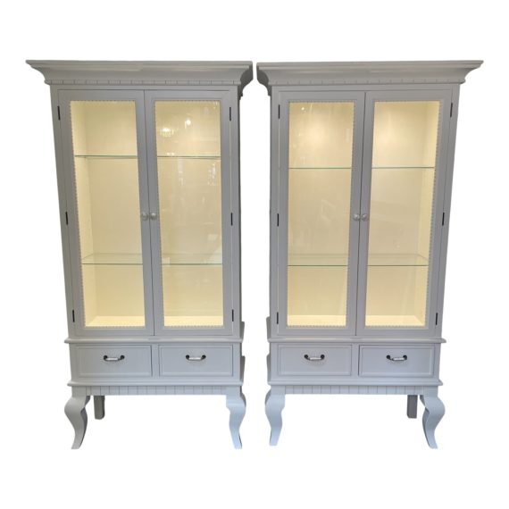 Custom Design Hickory French Neo-Classical Display Cabinets – a Pair. Original Price: $3,600