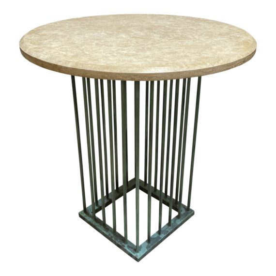 Custom Design Shellstone + Verdigris Copper Bar Table. Original Price: $1,632