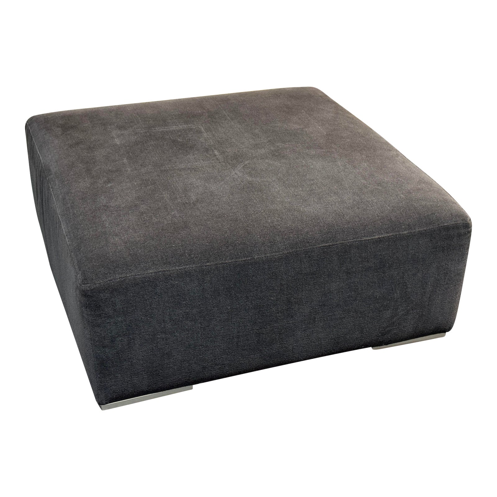 Design Plus Gallery present is a Custom Square Ottoman. Features a black fabric slip cover over a white canvas frame, giving it a sleek and modern look. The ottoman shows minor signs of wear on the fabric from regular use, adding character and charm to its overall appearance. This versatile piece of furniture can be used as a footrest, extra seating, or even as a coffee table when paired with a tray. Its clean lines and neutral color scheme make it easy to incorporate into any style of decor, whether in a living room, bedroom, or home office. The square shape provides ample surface area for resting your feet or setting down drinks and snacks, making it a practical and stylish addition to any room in your home. In good condition, visible and minor from usage.