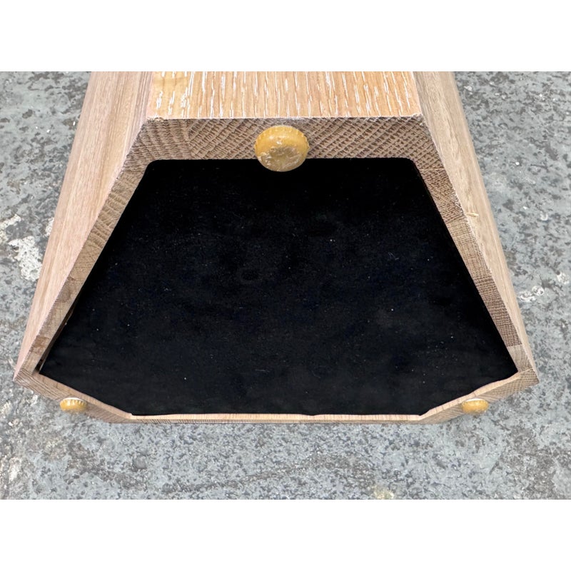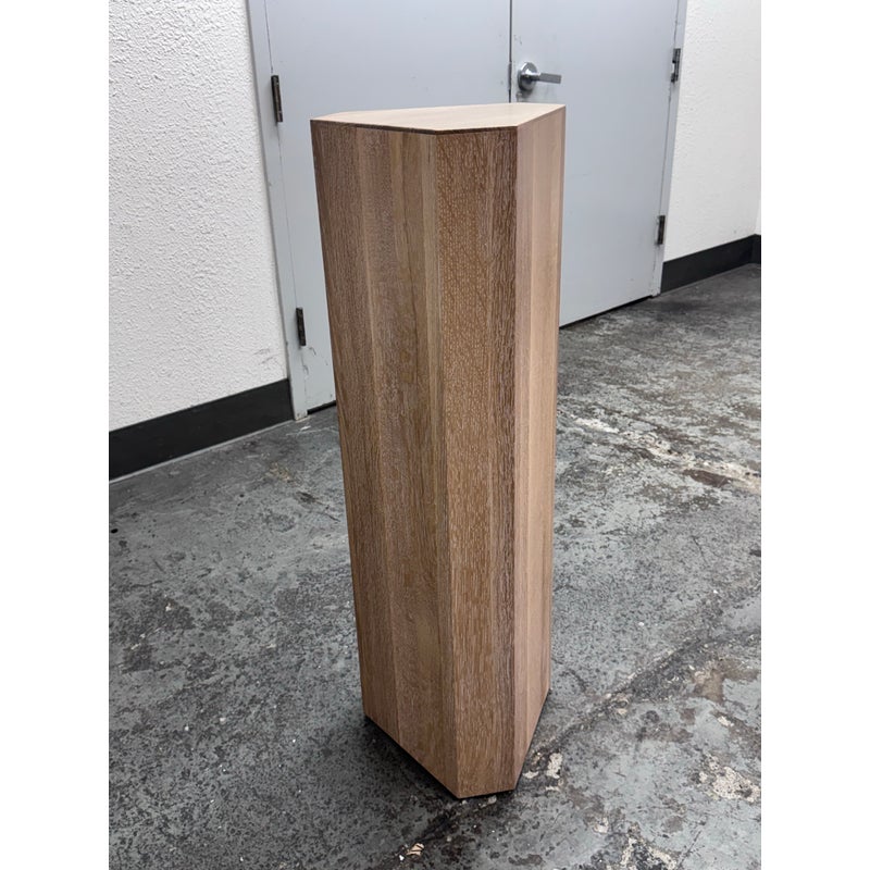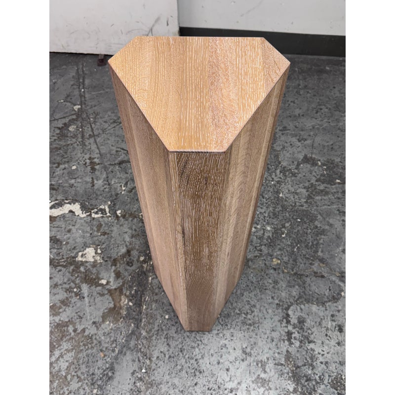 Design Plus Gallery presents a Sculptural Pedestal of Custom Design. Inspired by Constantin Brancusi’s masterpieces, this cerused Oak Wood plinth rises majestically from the floor to lend vertical interest to your space. Each is a work of art and a surface upon which to display decorative objects. Handcrafted in New York. Is in good showroom like condition with minimal wear for its usage. Made in USA.