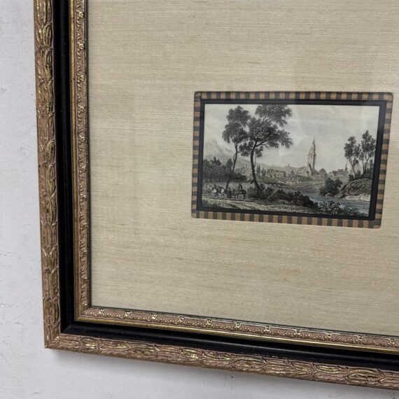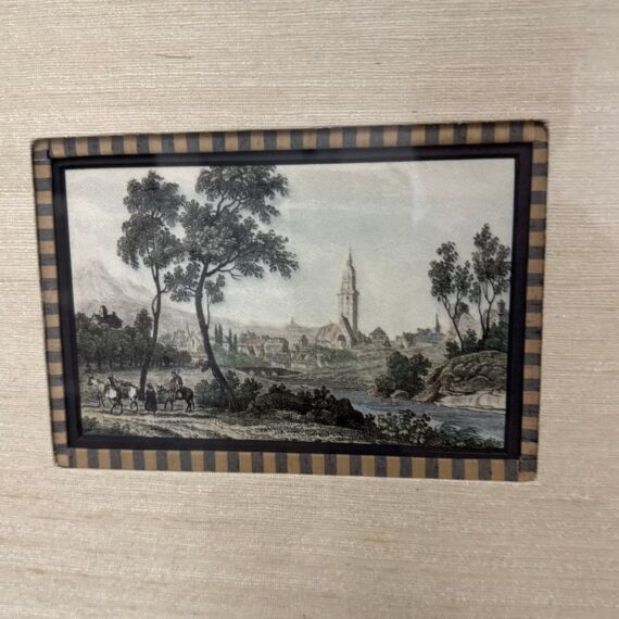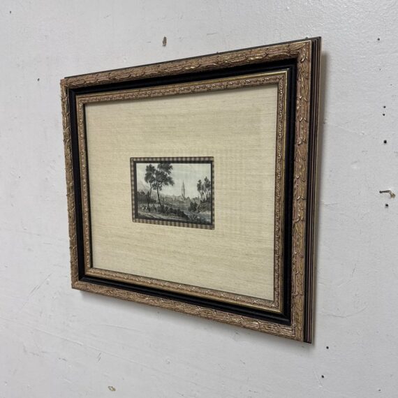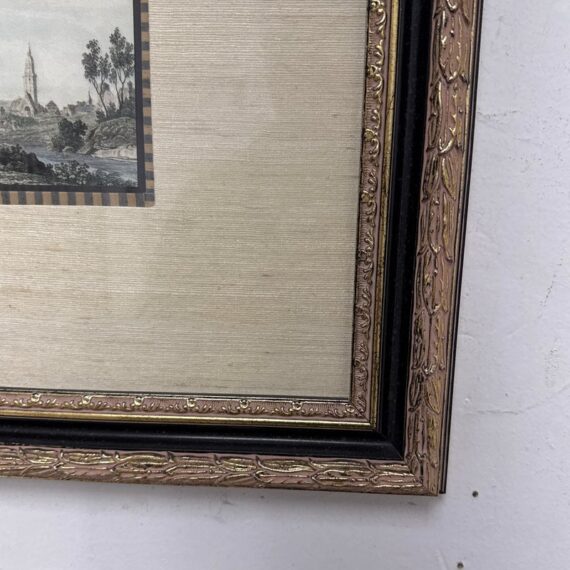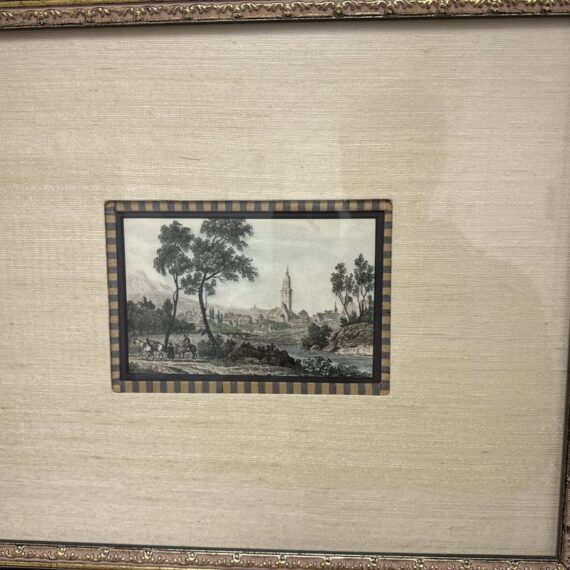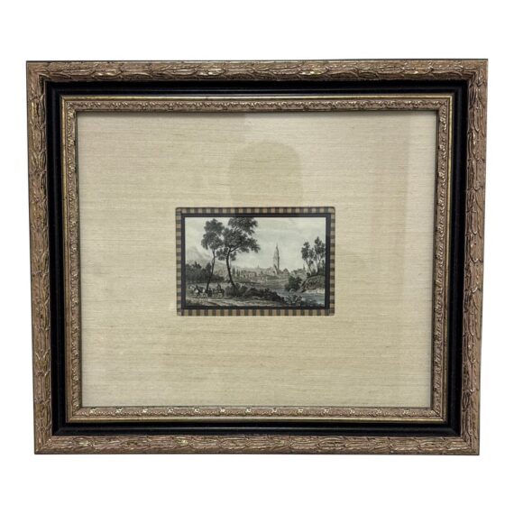 Design Plus Gallery presents a William Skelton’s Etching of the View of Dinan (Cote d’Armor), France. The etching is a timestamp of the region, showing the Côtes-d’Armor, a French department name that translates to “coasts of the sea”. It’s located in the Brittany region of northwest France, on the English Channel. Expertly framed in museum quality glass with beveled edge gold/black frame and silk matte. Is in good condition for its usage with minimal surface wear.
