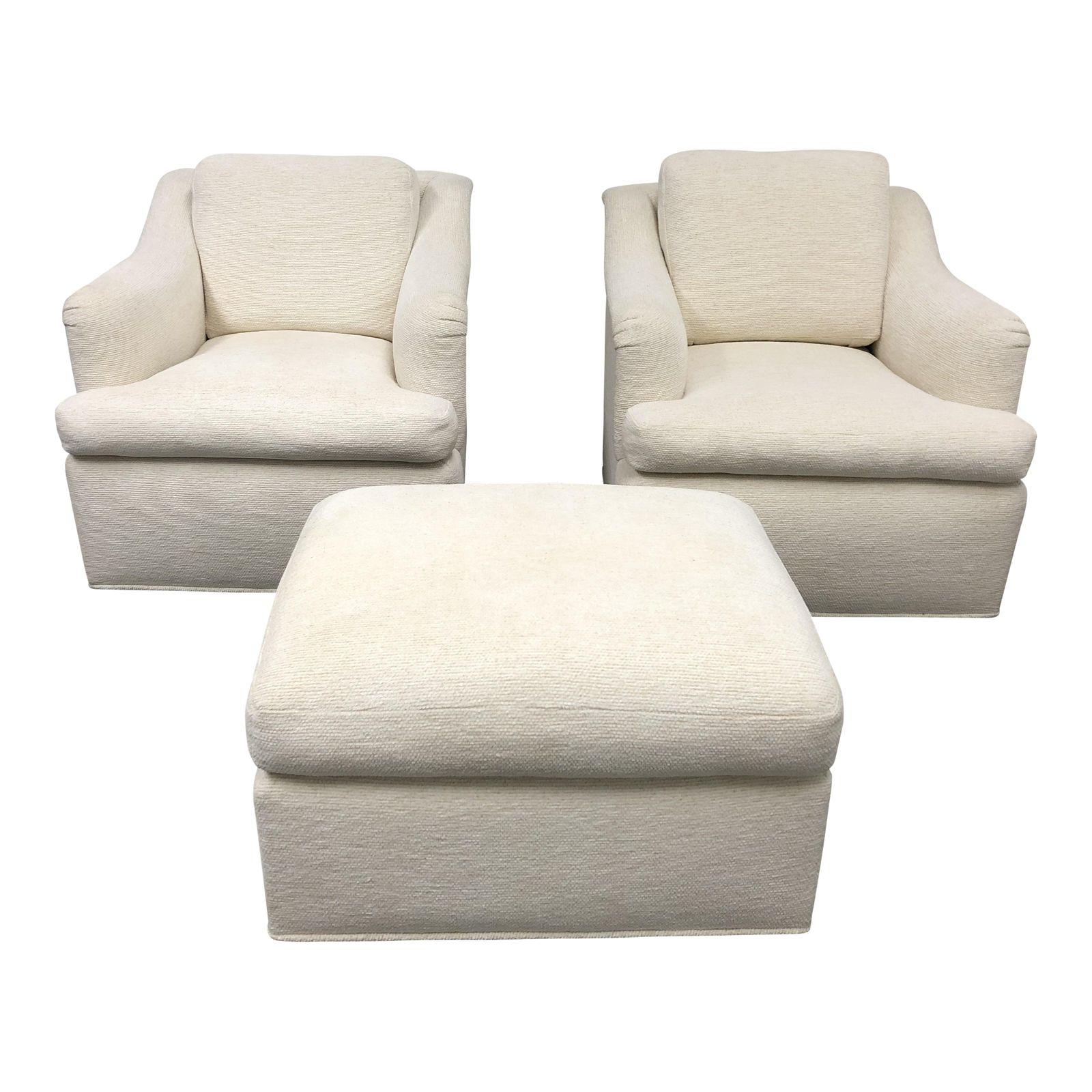 Custom Hilde Brande Swivel Armchairs & Ottoman – Set of 3. Original Price: $7,800.00