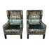 Design Plus Gallery presents a Pair Holly Hunt Darder Style Wingback Chairs customized in Osborne & Little’s Mansfield Park Velvet Upholstery. The empire style wingback chair that Holly Hunt designed as been keenly reproduced here in a high-end cotton viscose velvet with a smooth pile. The Osborne & Little fabric chosen has chinoiserie vases, tiled borders + ornamental trellis that inspired this richly patterned horizontal design. Good condition on both chairs, with minimal wear.