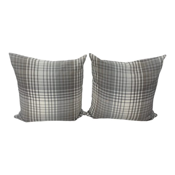 Design Plus Gallery presents a Pair of Cotton Plaid Pillows of Custom Make. Used in home staging these two pillows are nearly new. Great pillows for your lower back and neck, they are the perfect size to give you comfort. Easy going pattern that goes with rustic to modern households easily.