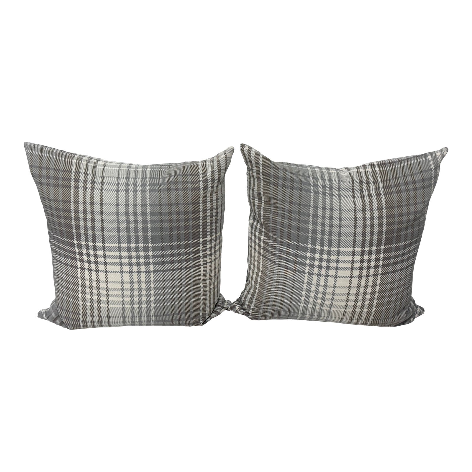 Custom Made Gray + White Cotton Plaid Lumbar Pillows, Pair