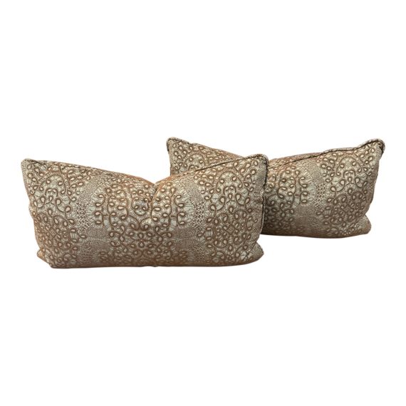 Custom Sierra Brown & Cream Lumbar Pillows, a Pair