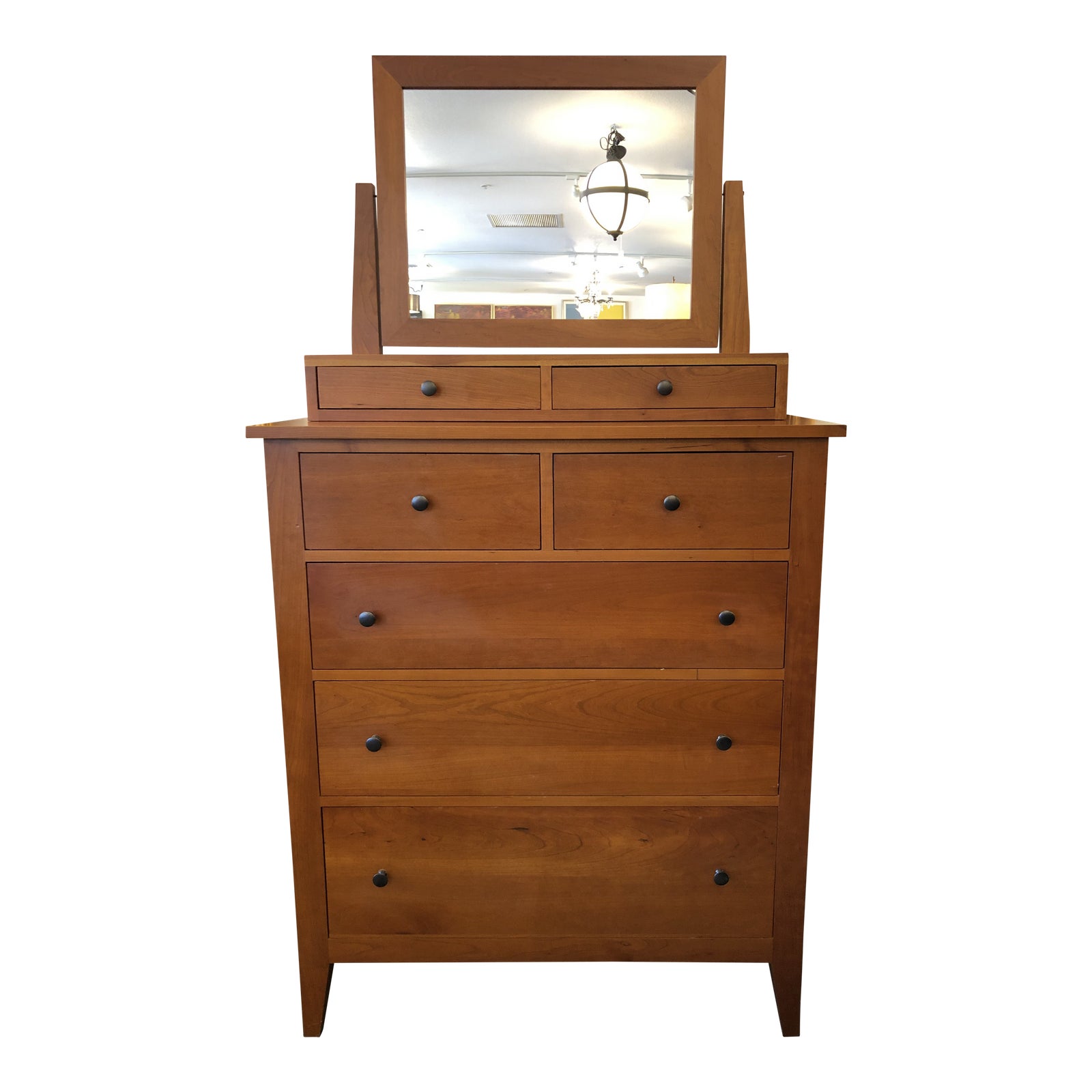 Design Plus Gallery presents a Custom Vineyard II Dresser by Gat Creek. In crafting this beautiful traditional piece, the design relies on structure instead of ornamentation to elevate the design. The two over three dresser is constructed using dovetail joinery with long solid squares local of sustainably harvested solid Appalachian hardwood and is pleasingly proportioned. The set is topped off with a two drawer, swivel mirror “glove” armoire for additional storage. Signed by craftsperson.