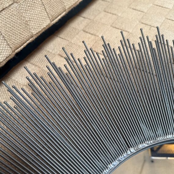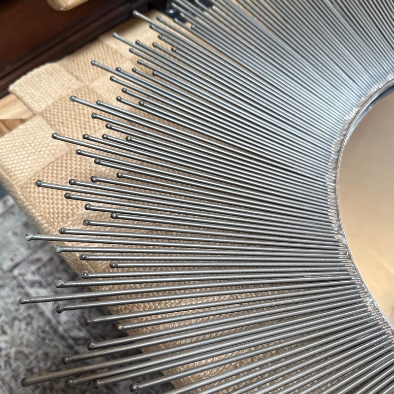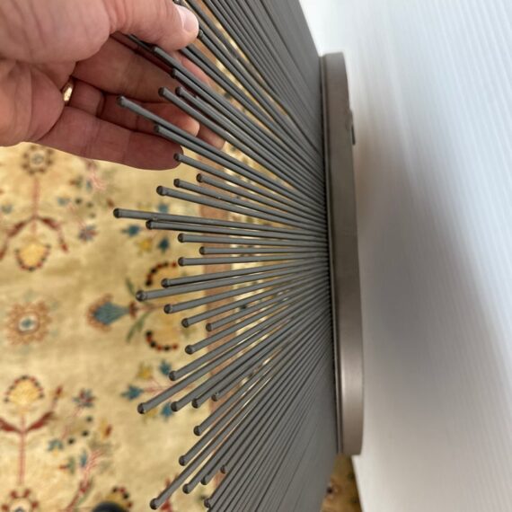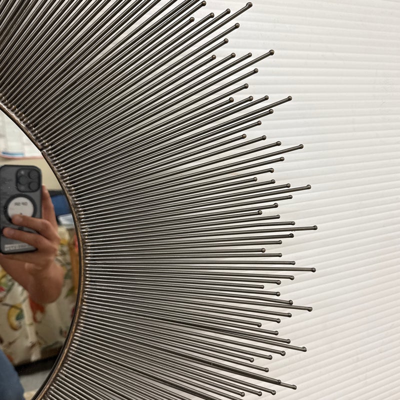 Design Plus Gallery presents the Aludra Wall Mirror from Cyan Design. Delivering eye-catching style, this small round wall mirror boasts a gorgeous frame with floral inspirations and a beautiful sense of movement. It has a round silhouette with a round mirror at its center. Crafted in iron, this mirror shows off a zinc antique finish. The style is no longer in production with the brand and is in good overall condition for its usage.