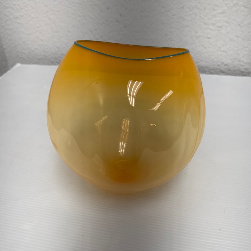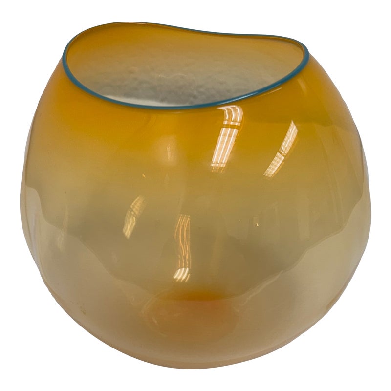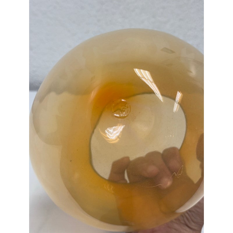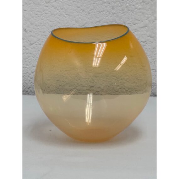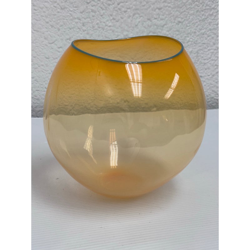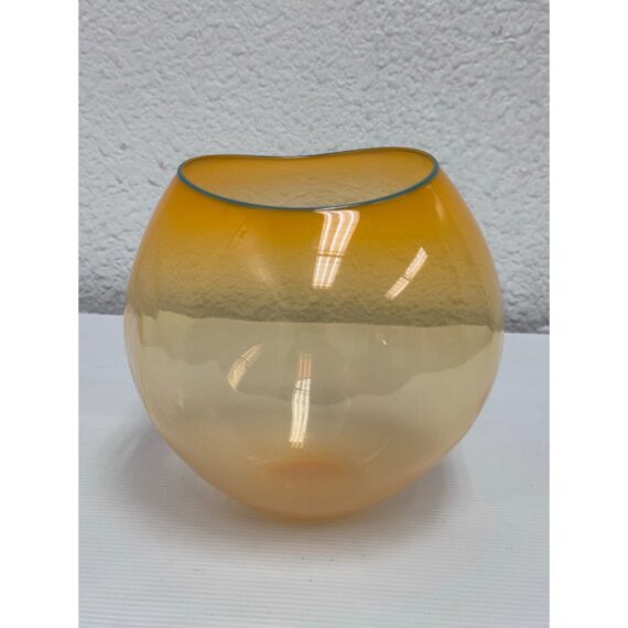 Design Plus Gallery presents One of Dale Chihuly’s “Soft Cylinders”. These are glass sculptures that blend the symmetrical design of his traditional “Cylinders” with the organic, collapsable form of his “Baskets”. This piece is in a sunset orange with the final form dictated by gravity’s pull on the molten glass. Signature + stamp is on the base. Overall in good condition with minimal signs of surface wear for its usage.