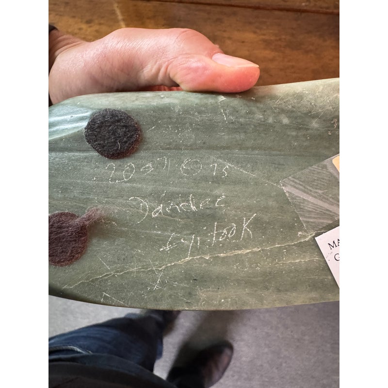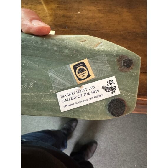 Design Plus Gallery presents an Eskimo Art Bird Inuit Stone Sculpture Signed by Artist Dandee Fyitook. Signed on bottom. Purchased from the Marion Scott Gallery of the Arts in Vancouver Canada.