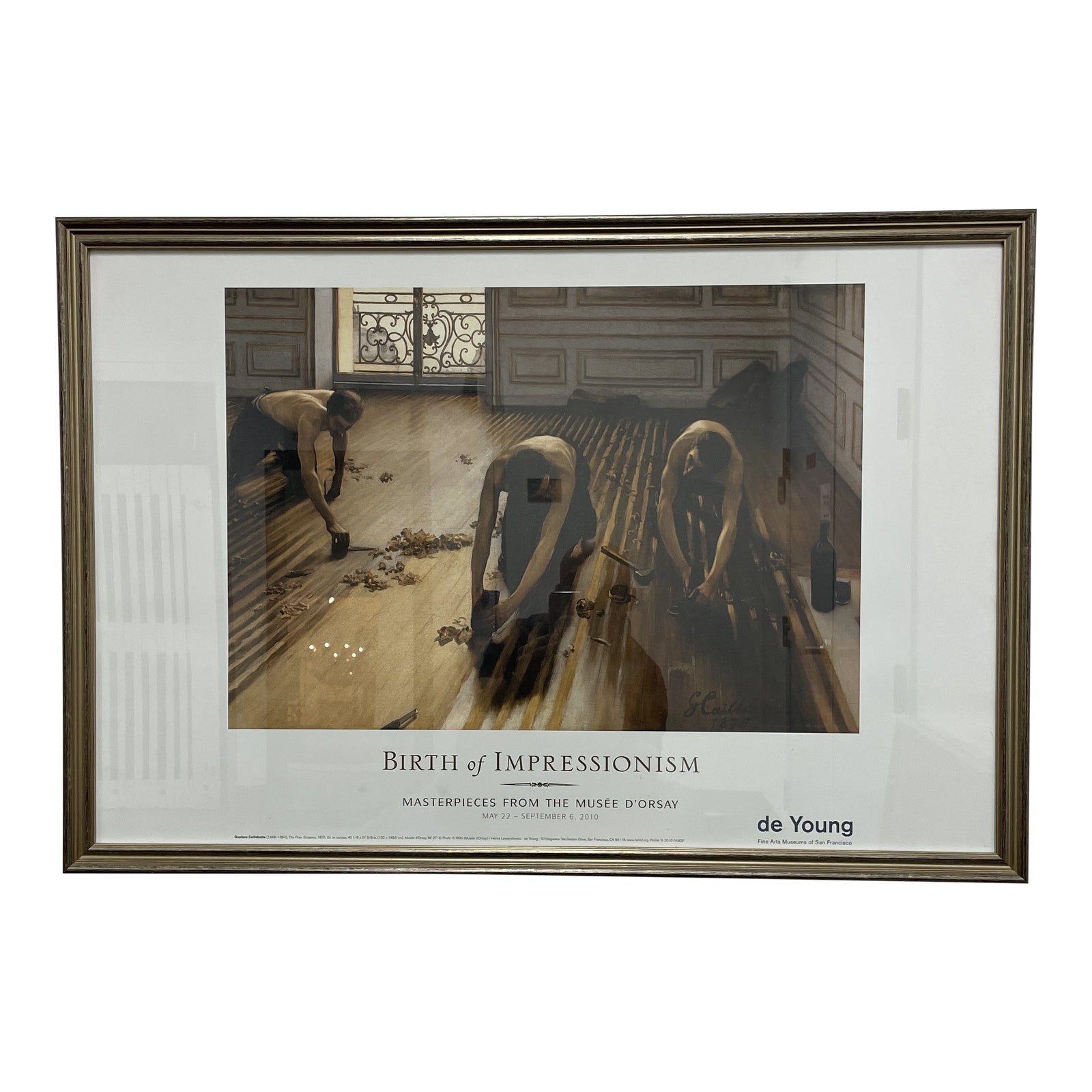 Design Plus Gallery presents a De Young Birth of Impressionism Framed Poster. Champagne gilt finish frame reflects the luminescent quality of the poster. Poster is a reproduction of an iconic impressionistic painting in the Musee D’ Orsay in Paris France. Minor wear, good condition.