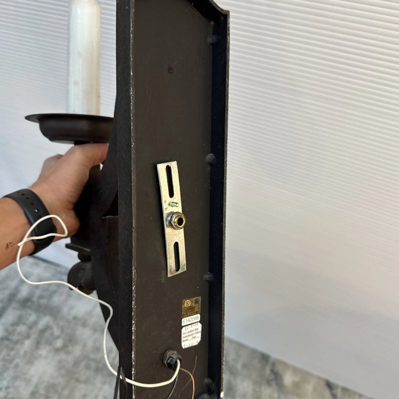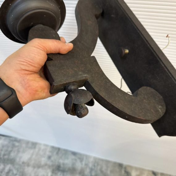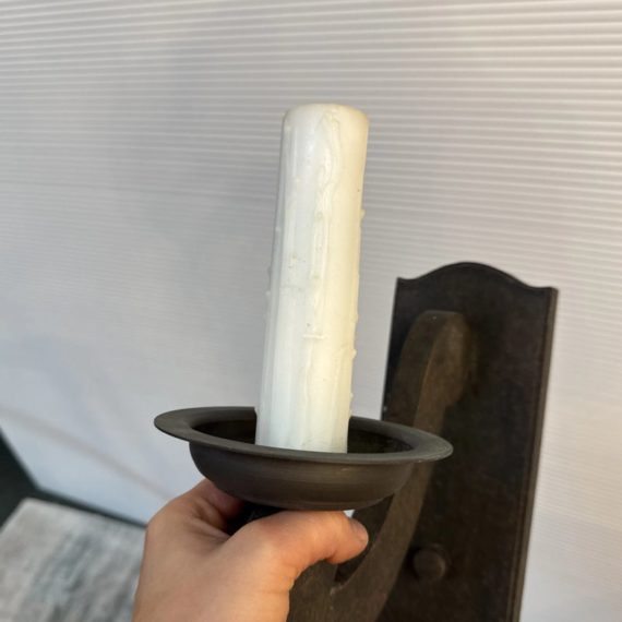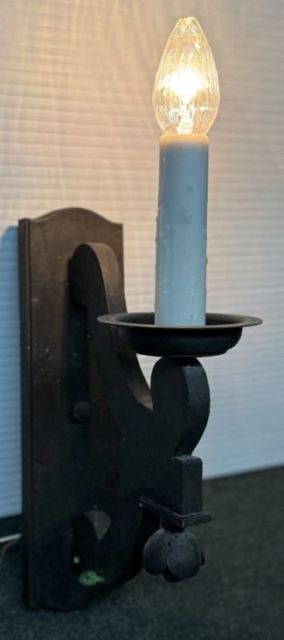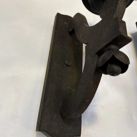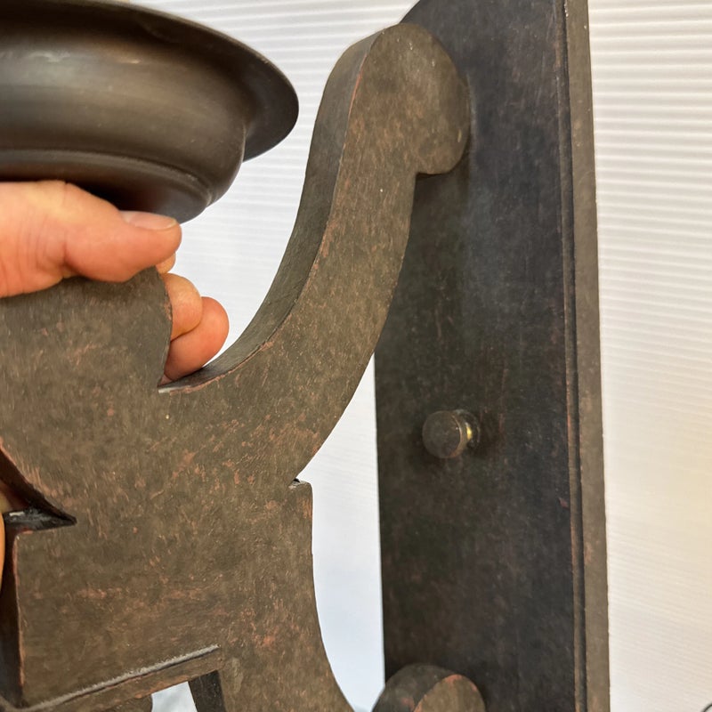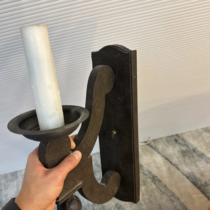 DesignPlus Gallery presents a Pair of Louis XIV Wall Sconce by Dennis & Leen. Chunky, modern silhouettes that reference LOUIS XIV stylings, but with the lightest touch and a wink. Antiqued bronze finish contrasts with “candle”. Light surface wear; condition is good for age and use.