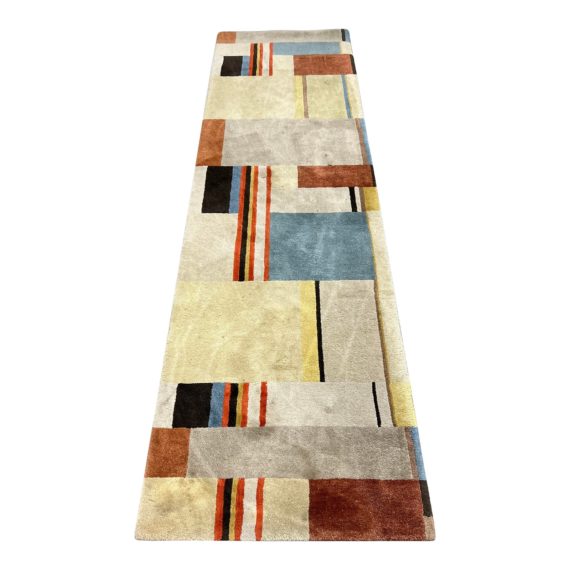 Design Plus Gallery presents a Runner Rug with the Christopher Farr Bauhaus Plate 120 by Gunta Stölzl. The rug does have multiple stains and conditions. 100% wool, hand tufted. Runner needs a professional cleaning.