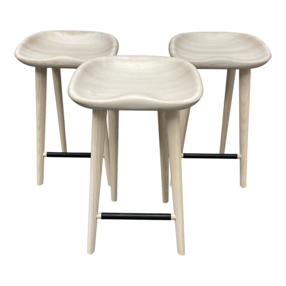 Design Within Reach Craig Bassam Ash Tractor Counter Stools, Set of Three. Original Price: $3,825