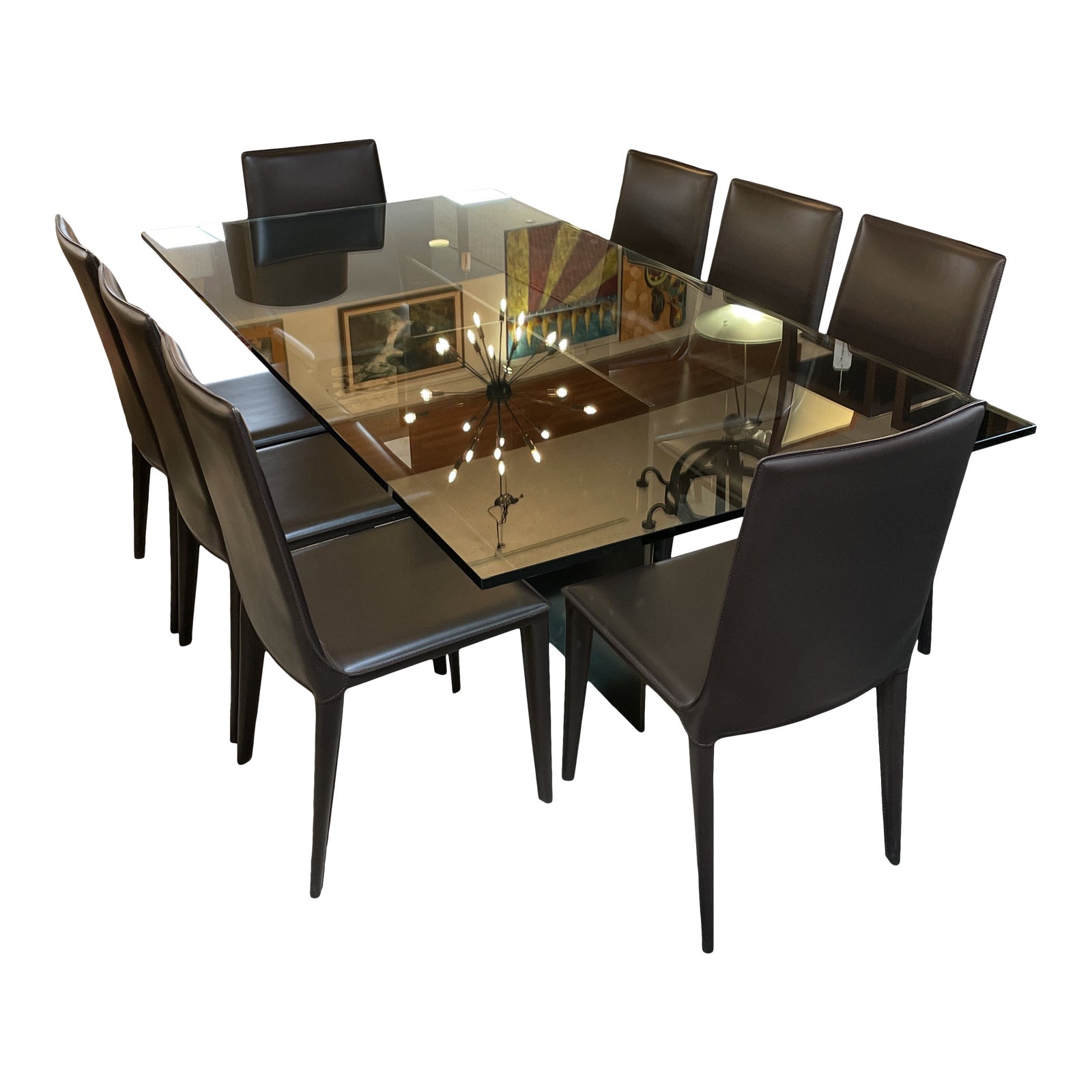 Design Within Reach Custom Glass Dining Table + Set of 8 Bottega Side Chairs