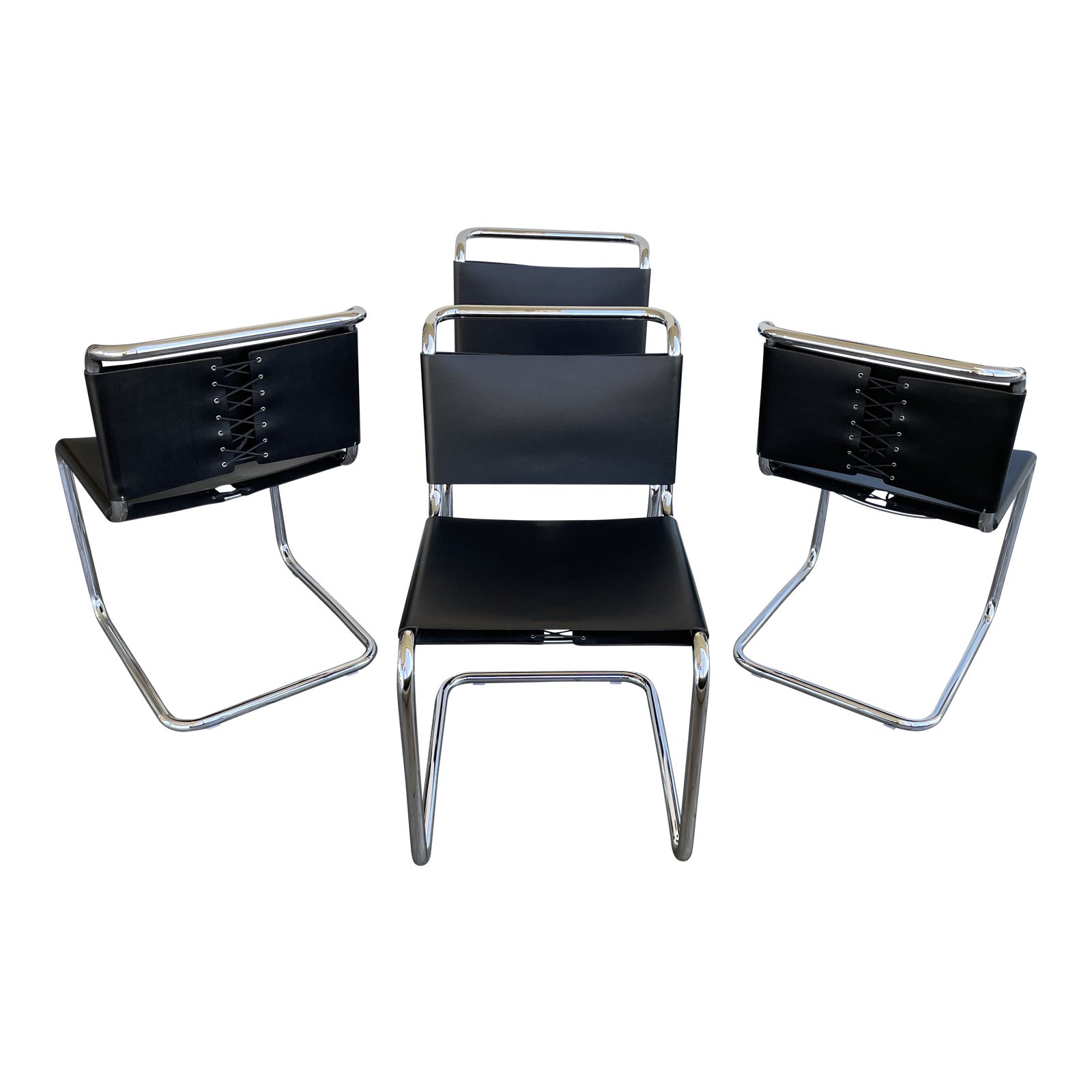 Design Within Reach Spolete Leather + Chrome Dining Chairs, a Set of Four. Original Price: $4,800