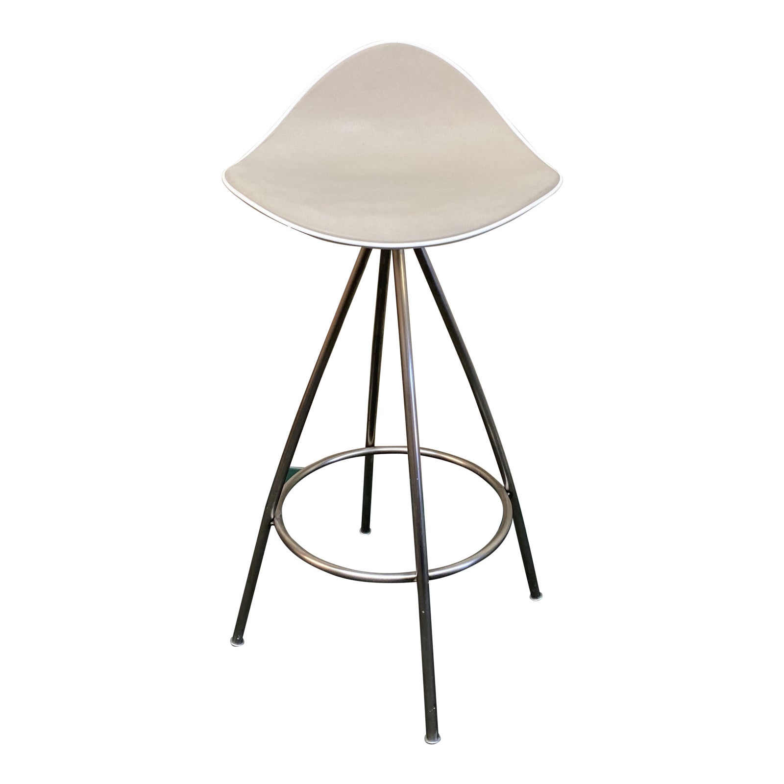 Design Plus Gallery presents an Onda Barstool by Stua for Design Within Reach. Designed by Jesús Gasca in 2006. The stool with a wave-like form that hugs the small of your back mimics the curves of the human body. The swiveling seat is soft rubber “skin” molded to the shell for superior durability. All Onda parts are 100% recyclable. Made in Spain. Minor wear.
