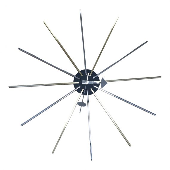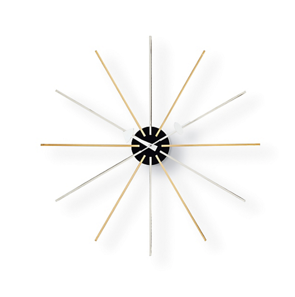 Design Plus Gallery presents a Star Clock by Vitra. The Star Clock originally designed in 1955 is one of more than 150 clocks designed by George Nelson Associates for the Howard Miller Clock Company, which sold them from 1949 into the 1980s. Nelson Associates, first launched as a studio by George Nelson in 1947 in New York City, employed some of the most celebrated designers of the time, including Irving Harper, Don Ervin and Charles Pollock, all of whom contributed to the clocks. Until its closure in the mid-1980s, the company designed a range of products for many clients, including Herman Miller, Inc. Uses one AA battery. Made in Poland