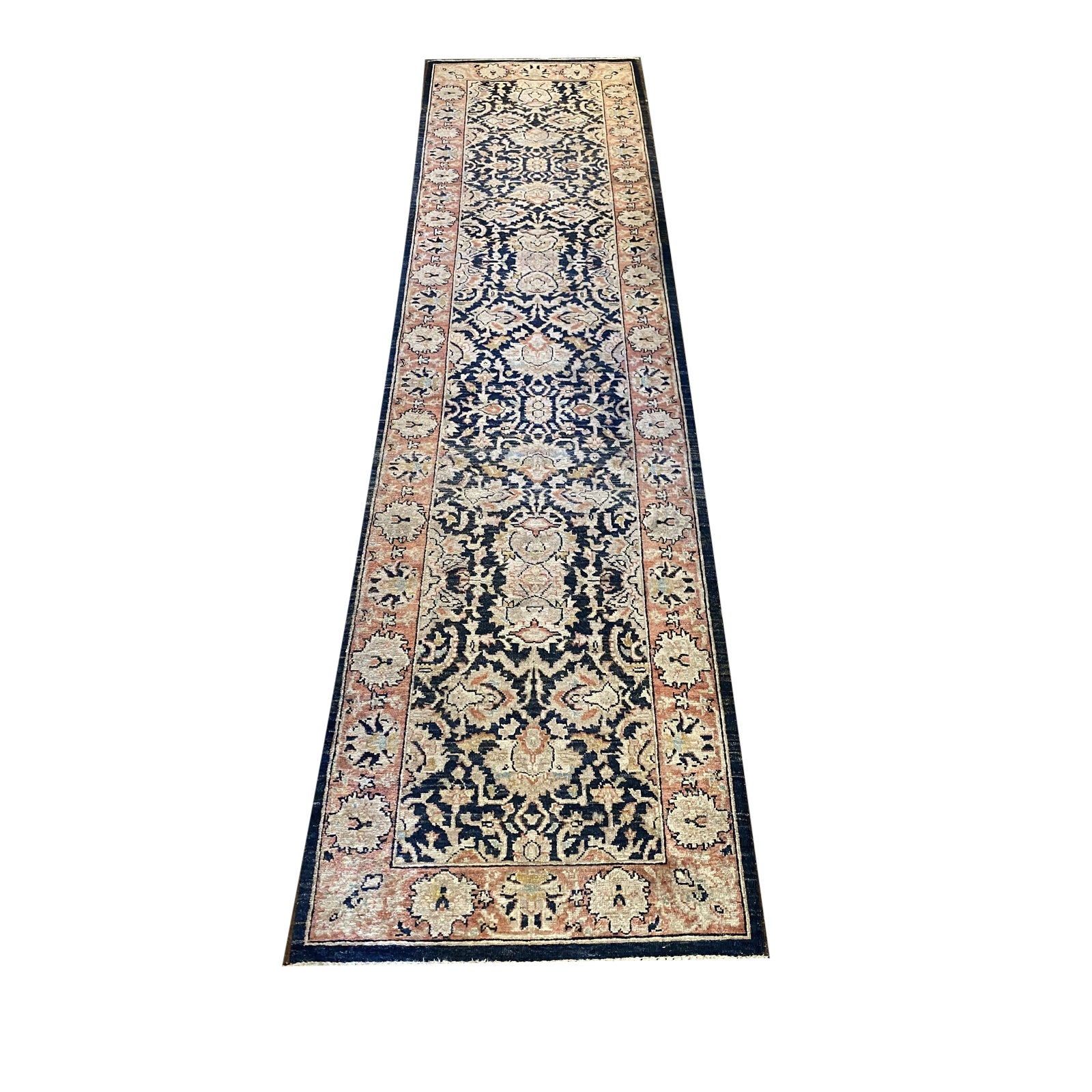 Design Plus Gallery presents a 2ft5in X 10ft 1in Runner by Designer Carpets. Hand knotted in a Agra Design. Crafted with 100% Wool. Minor wear. Made in Pakistan.