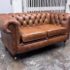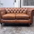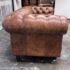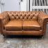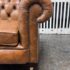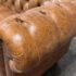 Design Plus Gallery presents the Belchamp Chesterfield Cracked Wax Tobacco Leather Tufted Sofa from Distinctive Chesterfields, England. The Belchamp boasts a deep buttoned back, traditional upright arms, and soft seat cushions. As a result, you can expect a comfortable, soft seat with additional cradling on the back.Belchamp combines a formal, distinguished look with a softer, yet surprisingly supportive sit. A single-buttoned border, with studded detailing and mahogany-stained feet, finished off with polished brass castors equip the Belchamp with all the hallmarks of a quality, crafted Chesterfield. Is in good condition with minor wear that is consistent with usage.