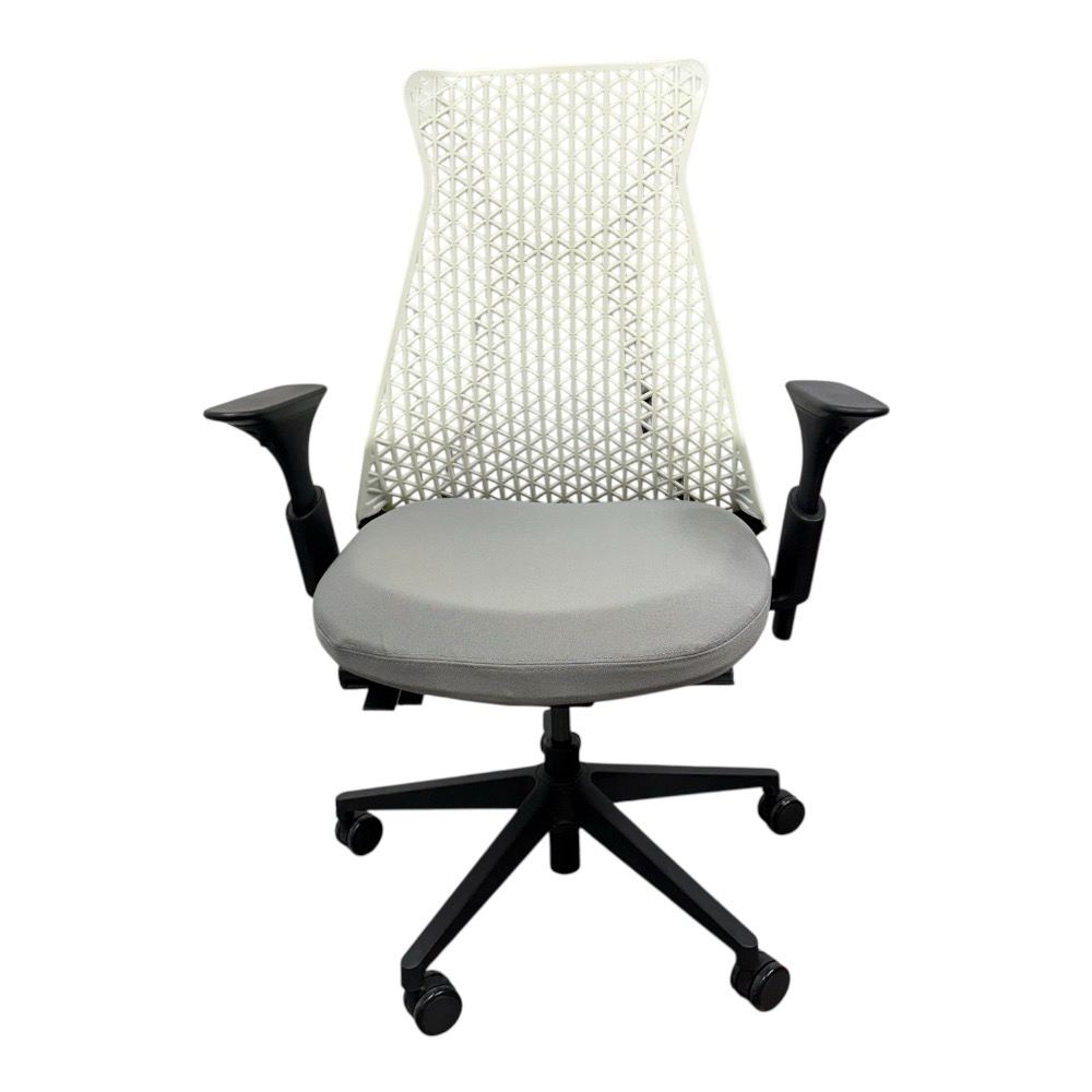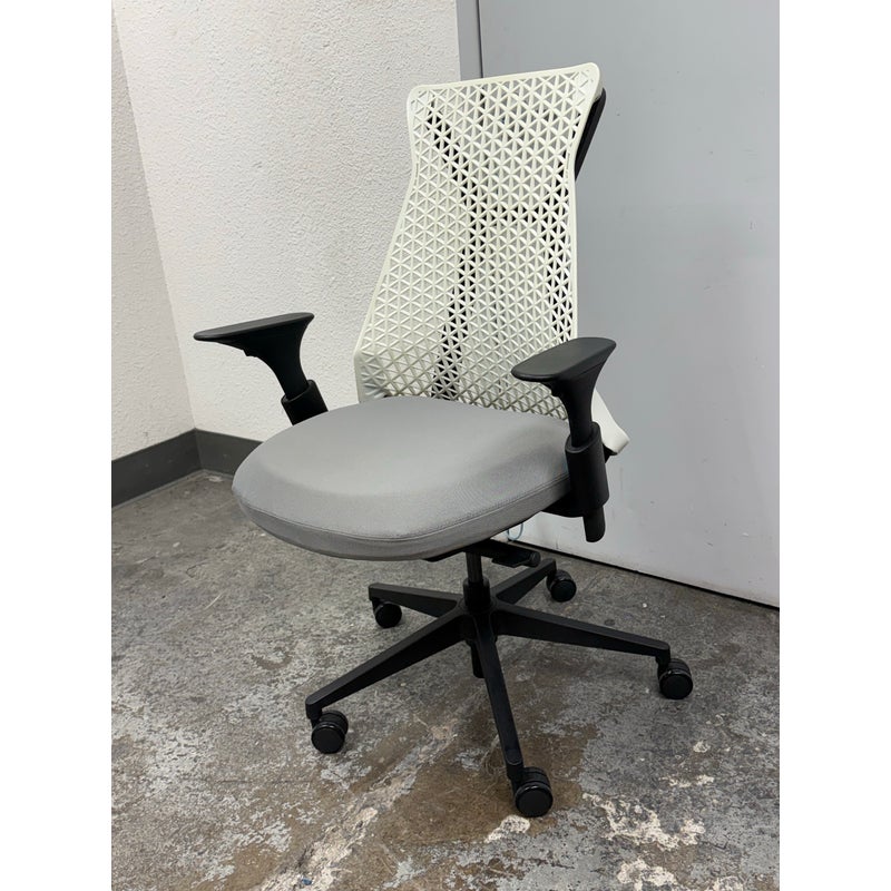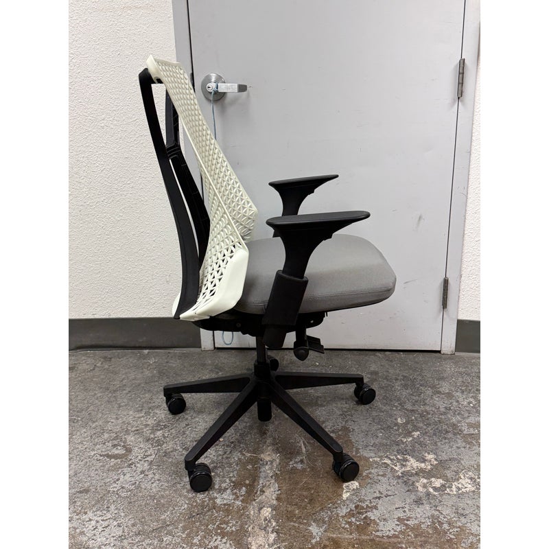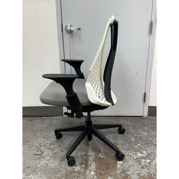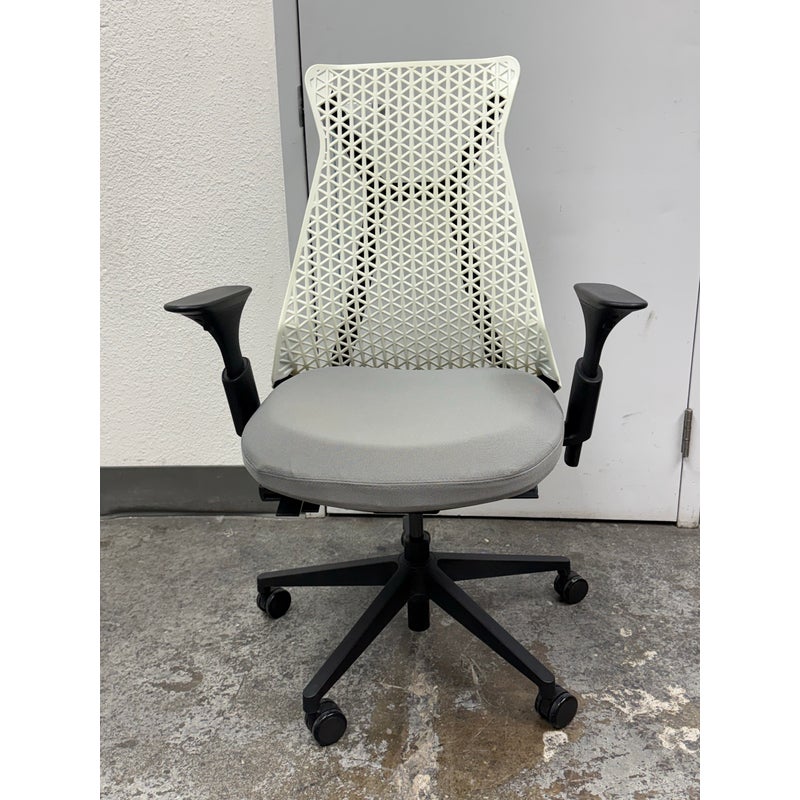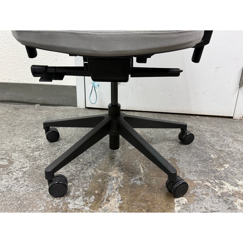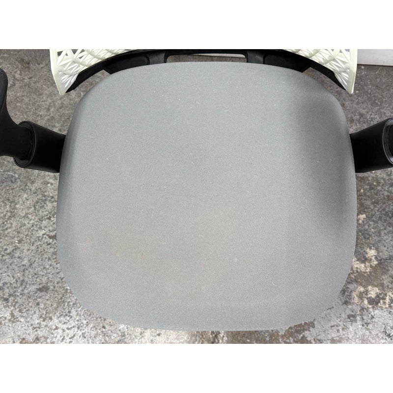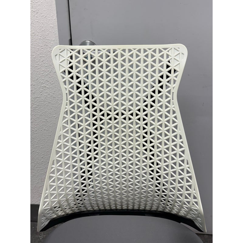Design Plus Gallery presents an Office Chair from Donati. Features a distinctive geometric pattern backrest made of an elastomer material, designed for flexible support, and a padded fabric seat. In good condition, visible and minimal wear from usage.