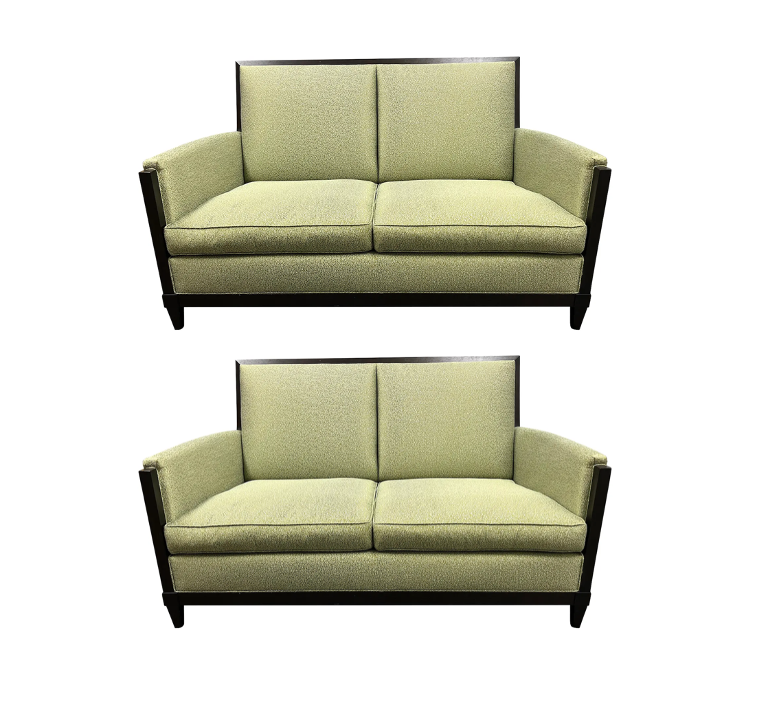 Donghia Custom Chartreuse Jacquard Loveseats – a Pair. Original Price: $15,000