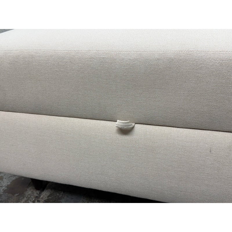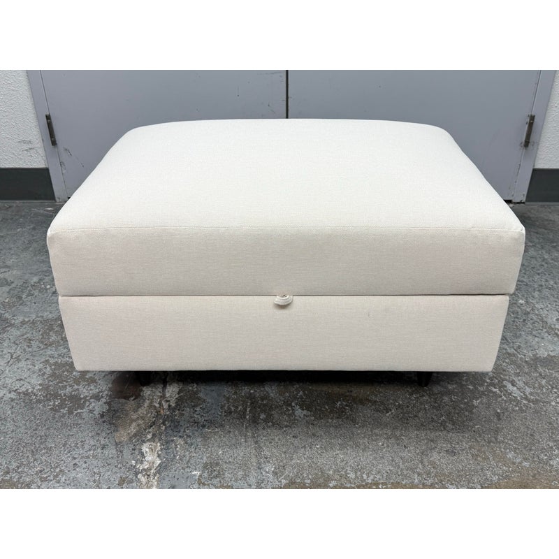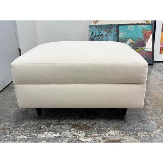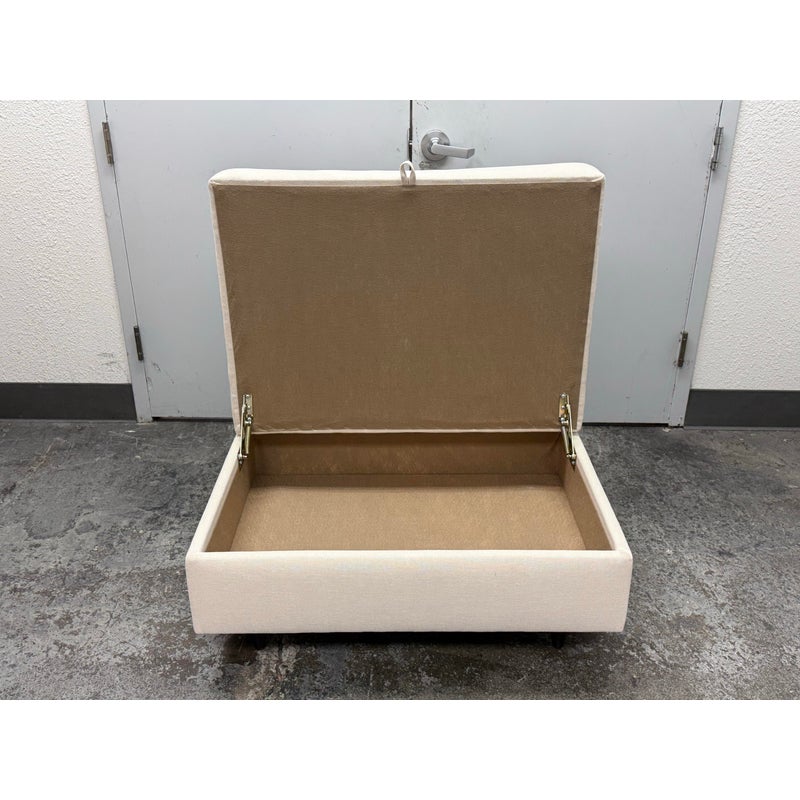 Design Plus Gallery presents a Storage Ottoman from DreamSofa Modern. This beautifully woven fabric covers the ottoman and utilizes cationic yarn technology to create a unique contrasting color effect. The fabric is produced in environmentally friendly mills, and jet dyed to create exceptional color saturation and a highly polished look and feel. It lifts upwards to reveal an open cavity space for storing high use items that do best tucked away regularly. The piece is in showroom like condition. Made in the USA.