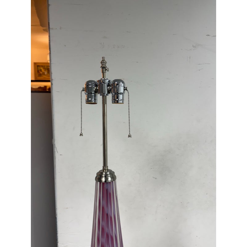 Design Plus Gallery presents a Pair of Vintage Opalescent Murano Table Lamps by DWM Maloos. These Vintage Opalescent Color Shifting (Clear/Raspberry Pink/Blue/Purple effects) Glass Table Lamps are attributed to Seguso from Mid 20th Century era, Rewired and rebuilt. The bases are the same, the upper hardware are different. These are stunning lamps for the perfect space. In good condition, minimal wear from use. Doesn’t not come with shades. Made in Italy.