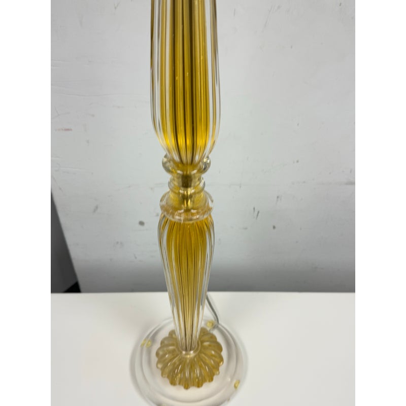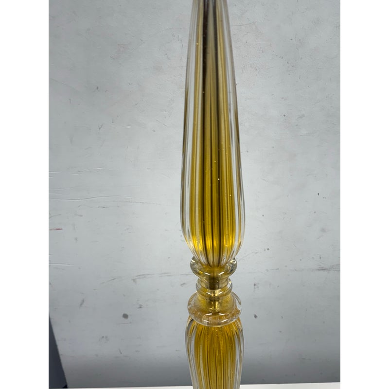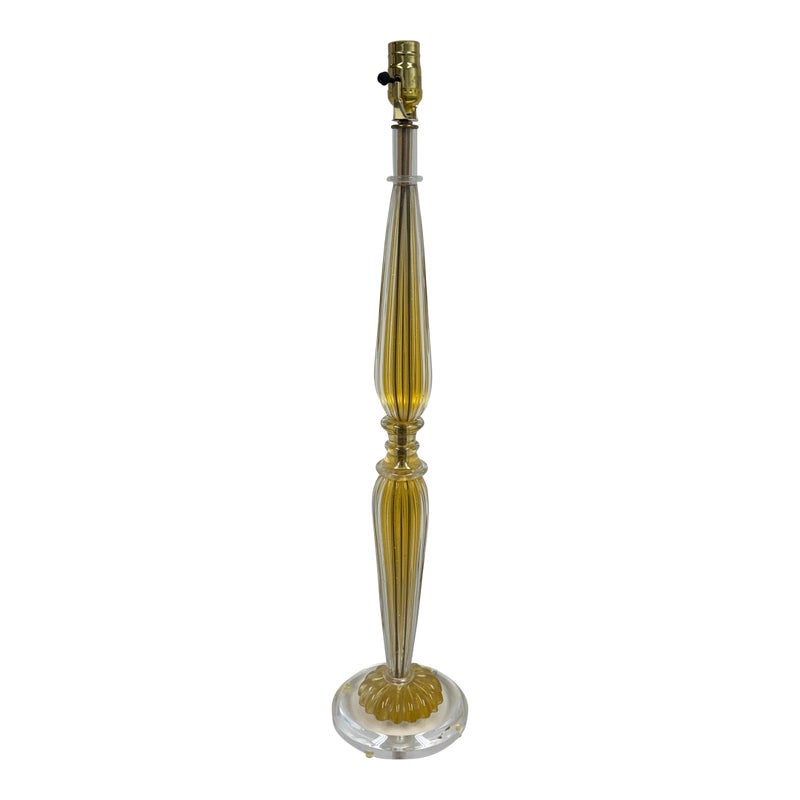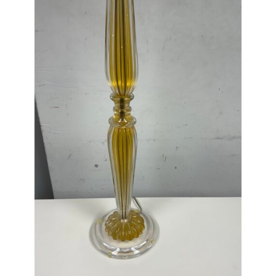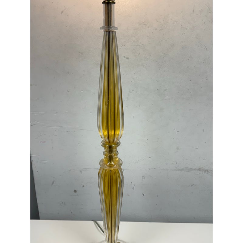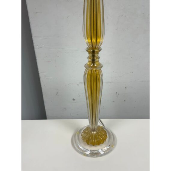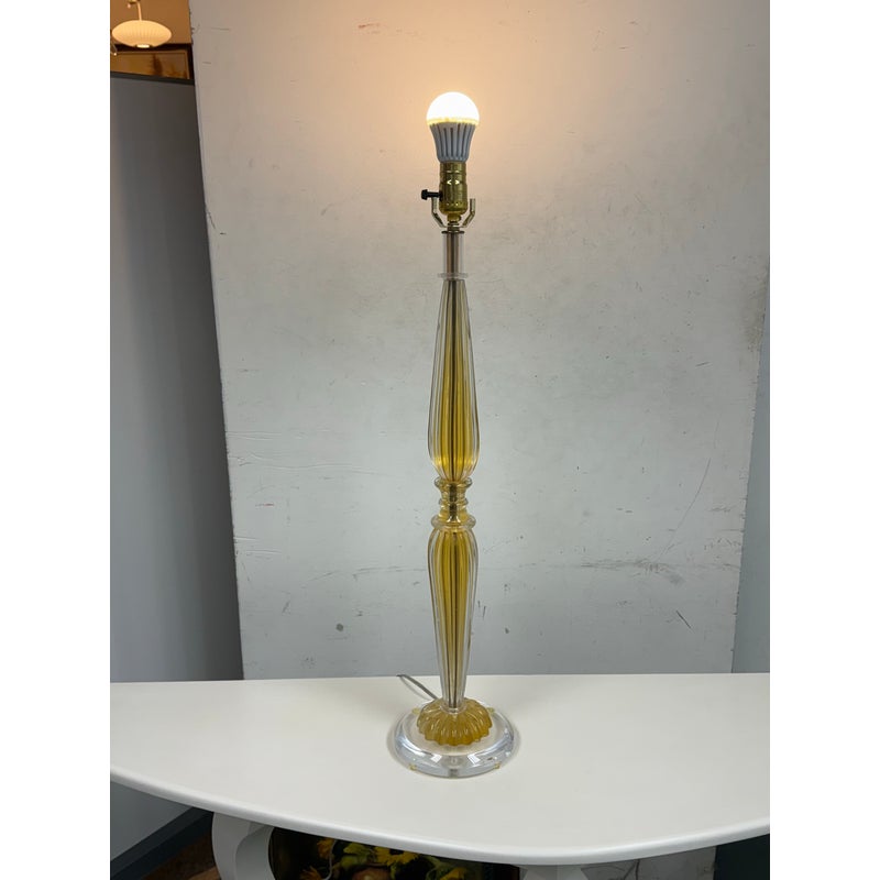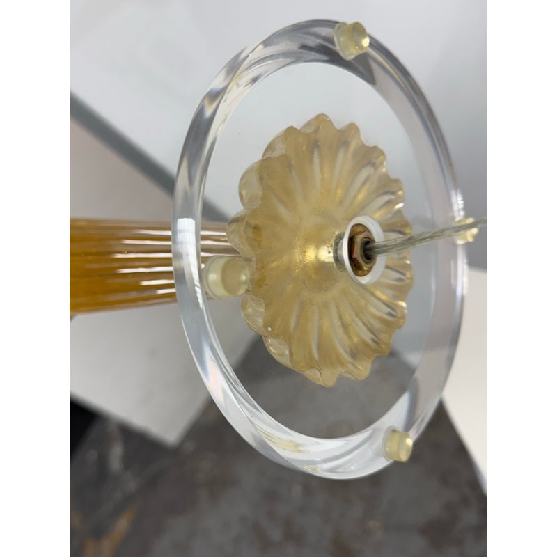 Design Plus Gallery presents a Custom Design Resin Lamp by DWM Maloos. Hand made, inspired by vintage authentic Murano hand-blown glass. This resin lamp is made by hand and like Murano hand-blown glass has beautiful Gold flex, bubbles, and asymmetrical qualities. Does not come with a harp or lampshade. In good condition, showroom sample condition. From the San Francisco Design Center.