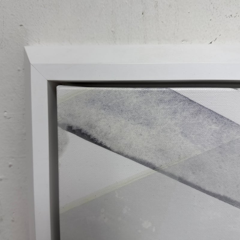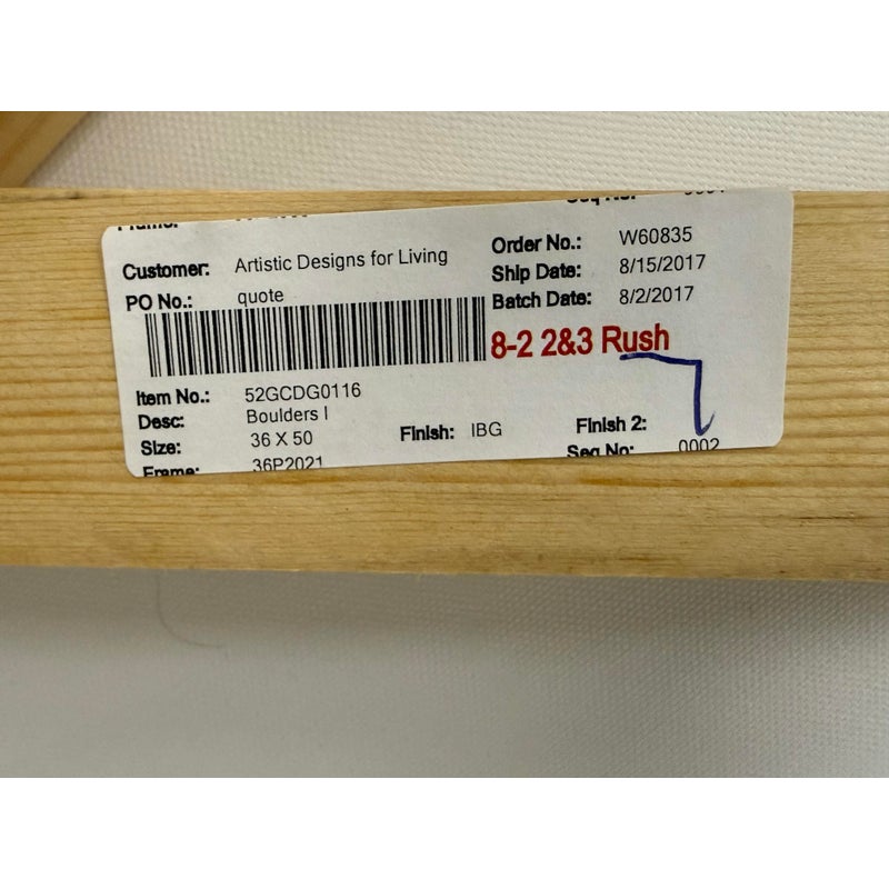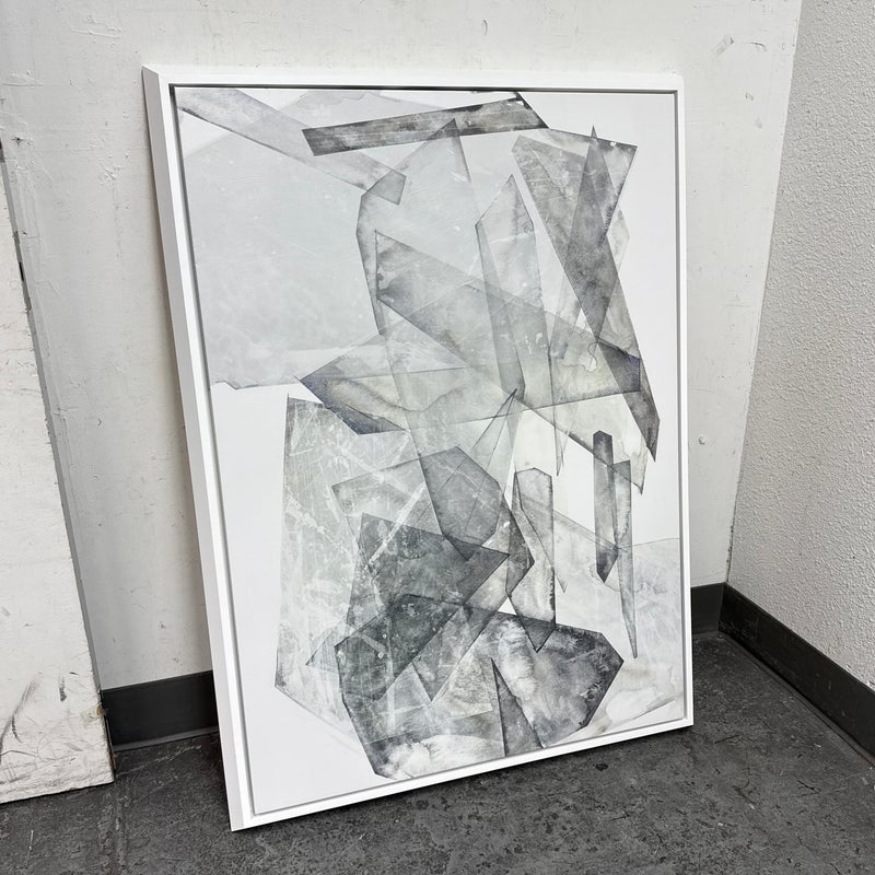 Design Plus Gallery presents “Boulders I”, a Graphic Art Print by Dylan Gray. This abstract print is in a white frame with white background with a grayscale of neutral tones that give the illusion of mountainous ranges in a harmonic, sizable print. The artwork is printed on stretched canvas then inset into a beveled edge frame. Overall it is in good condition for its usage.