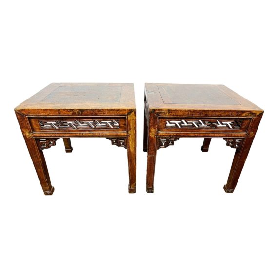 Early 20th Century Chinese Carved Elm Side Tables – a Pair