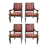 Early 20th Century Empire Brass Sphinx + Wood Arm Chairs – Set of Four