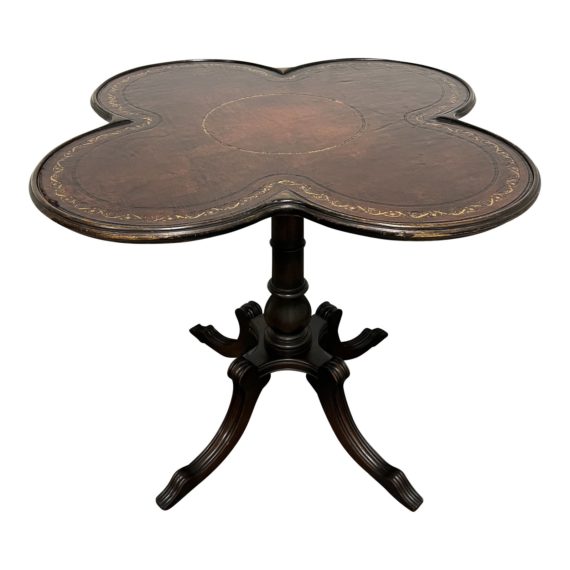 Early 20th Century English Quatrefoil Wood + Leather Table