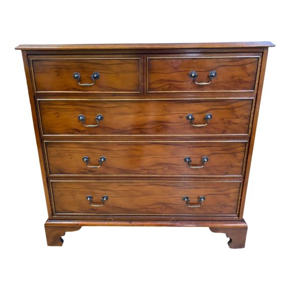 Early 20th-Century English Wood + Inlay Chest of Drawers