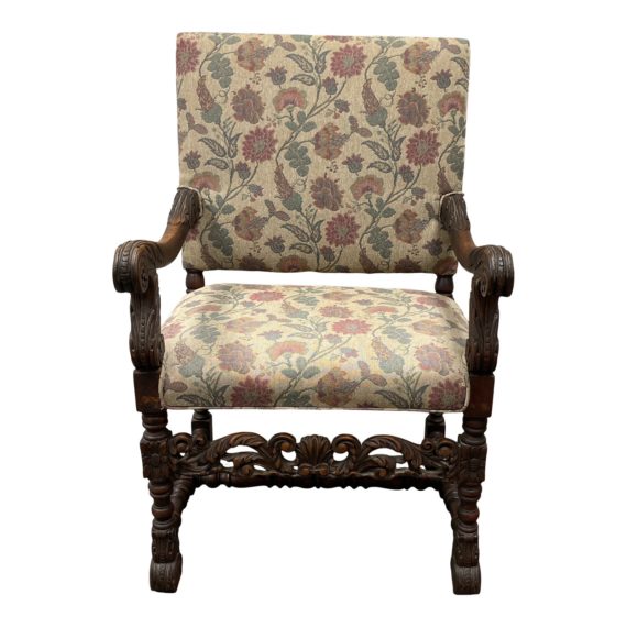Early 20th Century Upholstered Wood Frame Floral Arm Chair