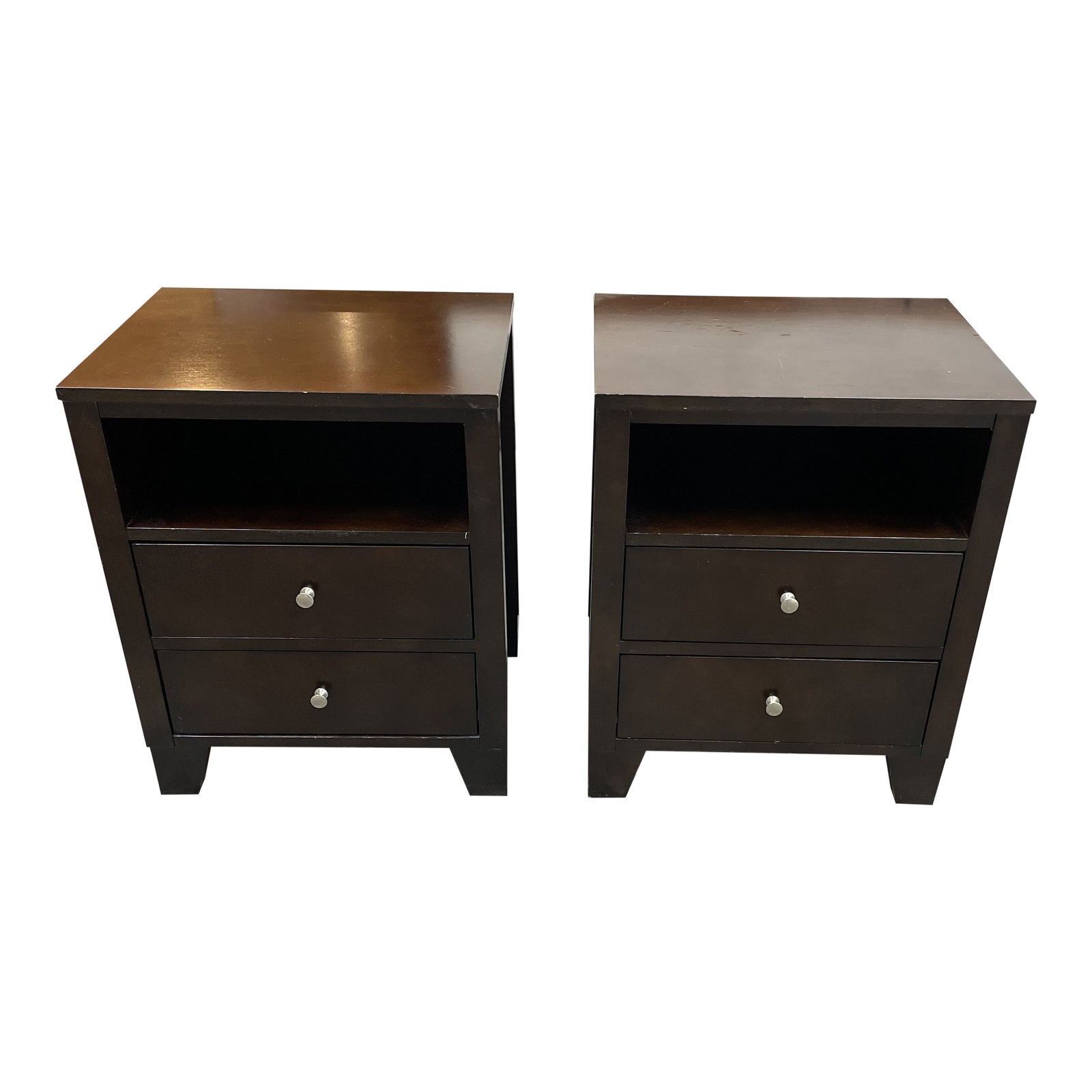 Early 21st Century Contemporary Espresso Stained Wood Nightstand – a Pair