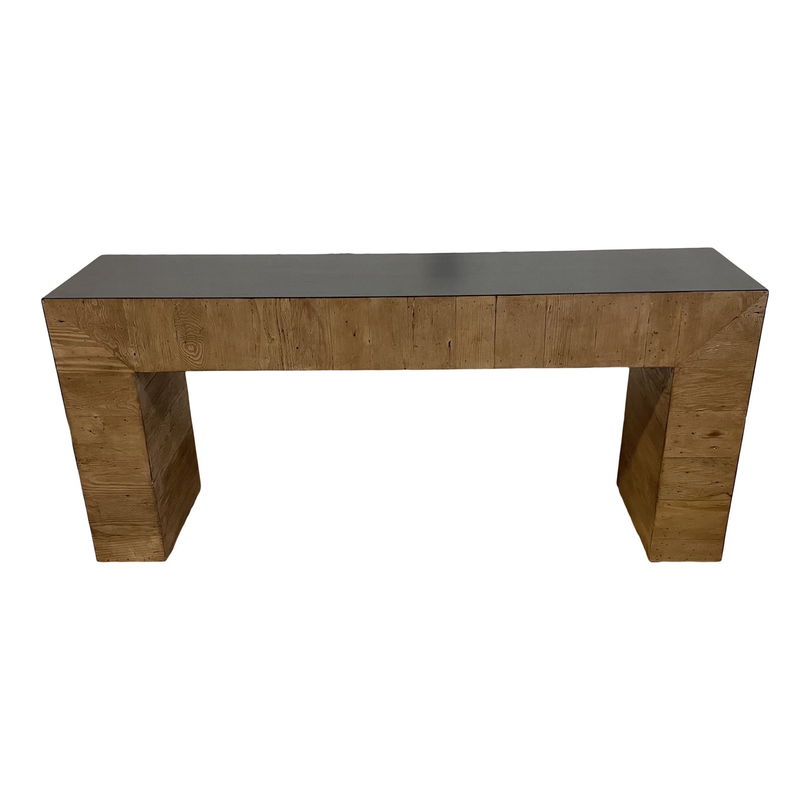 Early 21st Century Custom Design Reclaimed Wood + Steel Wrap Console