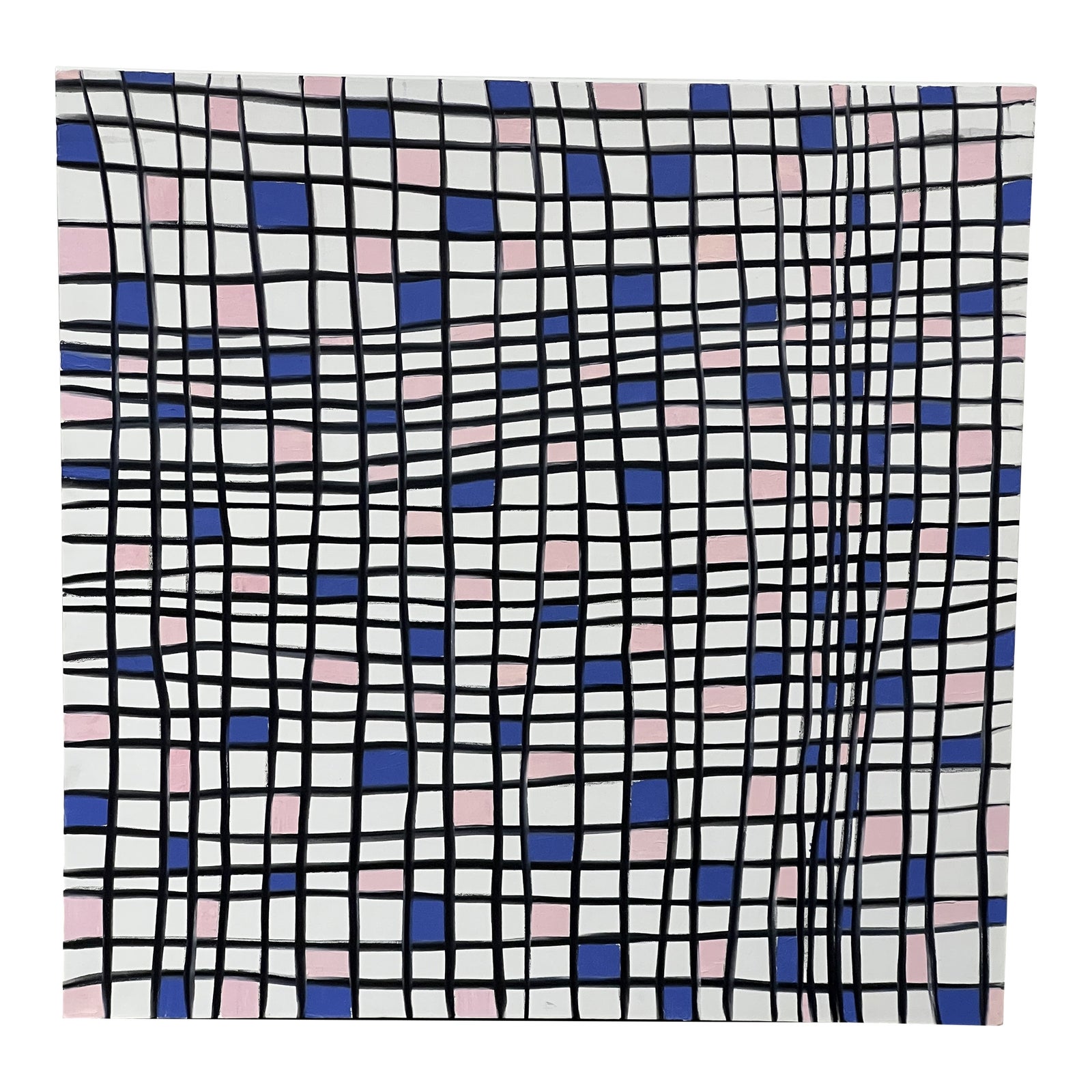 Design Plus Gallery presents an ‘Interwoven’ is an Original Artwork by Ed Calhoun of EL Film Studios. The medium is Oil on Canvas Signed + Dated. As an artistic team, Ed and Linda Calhoun offer a unique perspective of the world; a multicultural blend of African American, Caucasian, southern, northeastern, male, female, extrovert, introvert. Artworks have been showcased around the world and SF Moma. “Interwoven” is a grid of undulating squares that are mostly empty spaces with red + pink colored into a few. This could make a great focal point in your space. Straight from the private collection + gallery of the Artist. Be the first to own this beautiful art. Painted in San Francisco, USA.