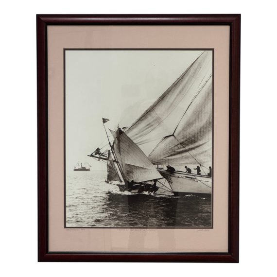 Design Plus Gallery presents the Maritime Photography Print by Edwin Levnick. The two ships Little Annie and Virginia were captured in his original print from c.1886. Frame, matting and image are in good condition consistent with its age + use.