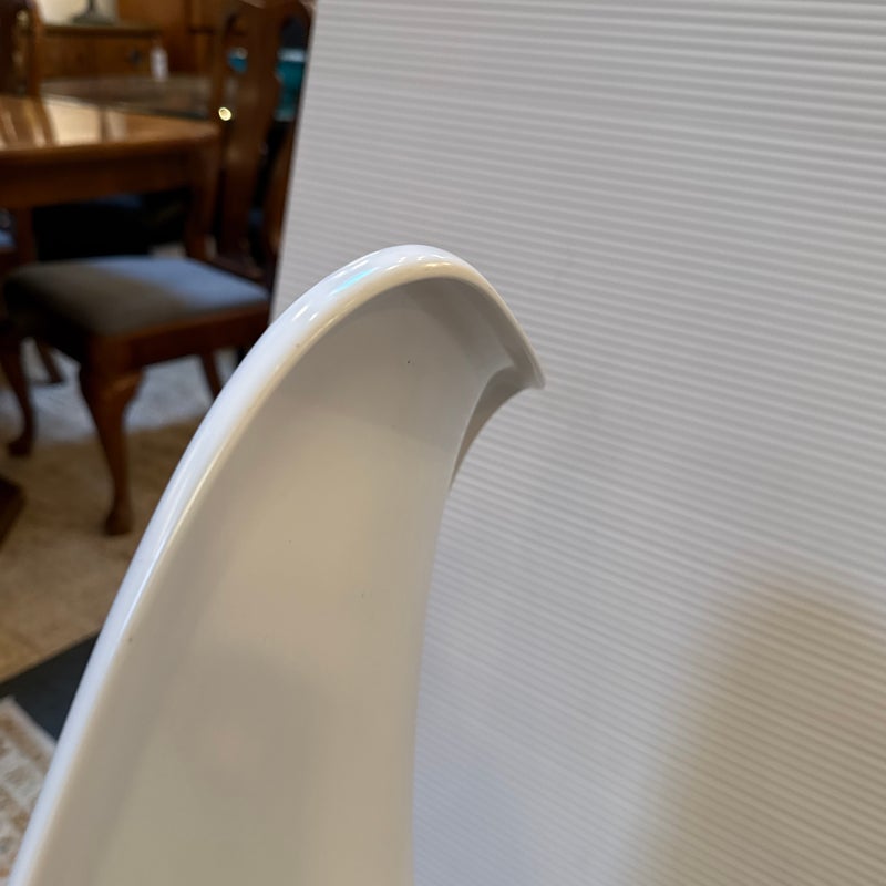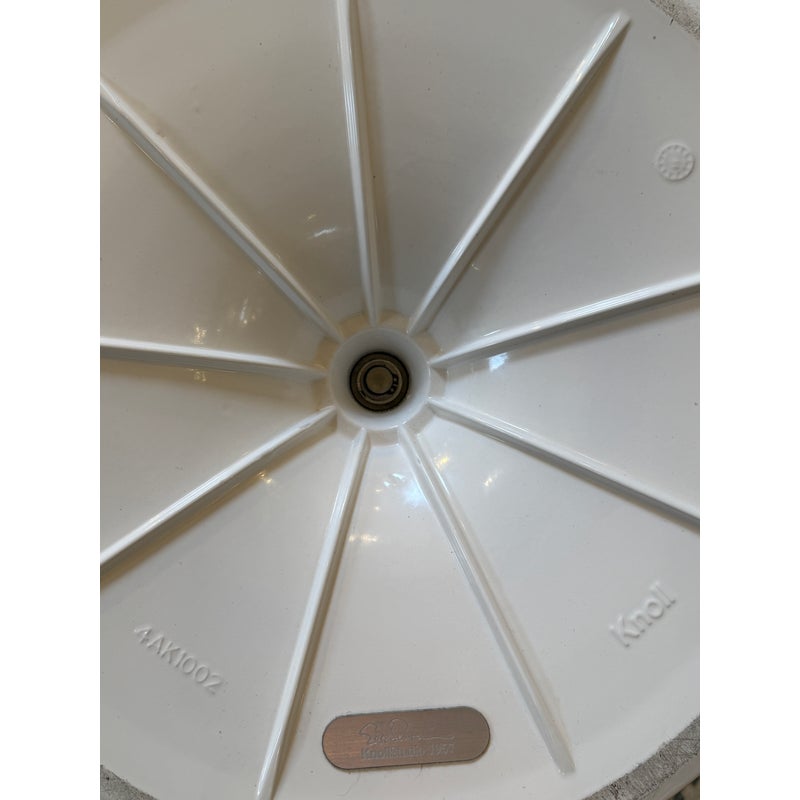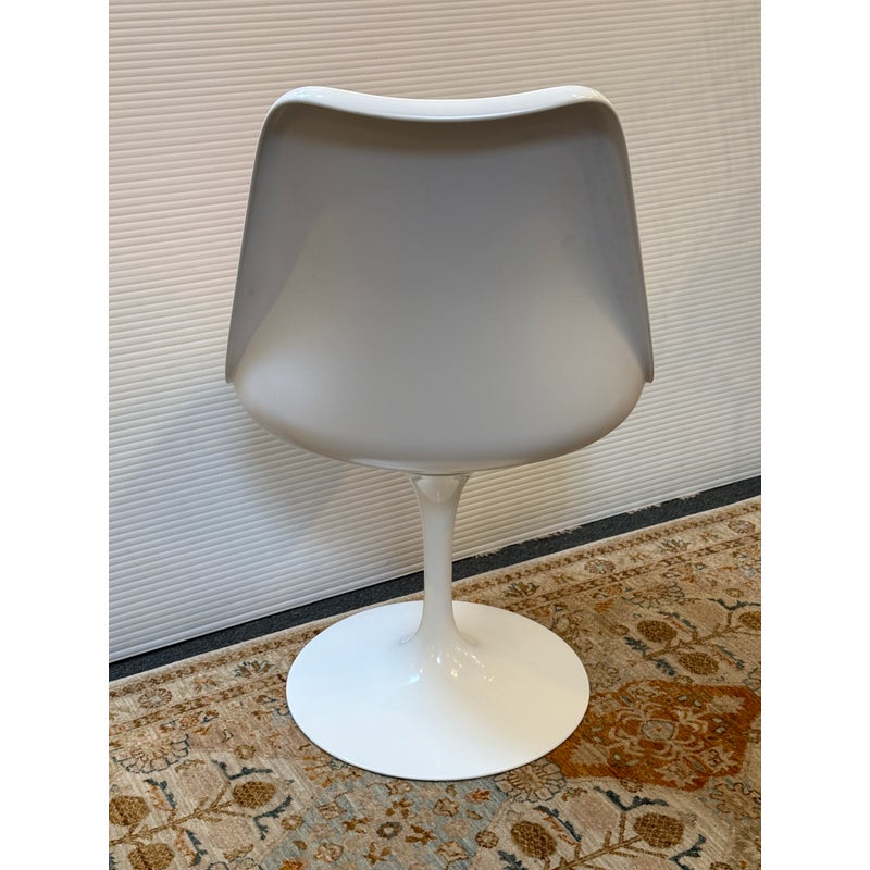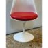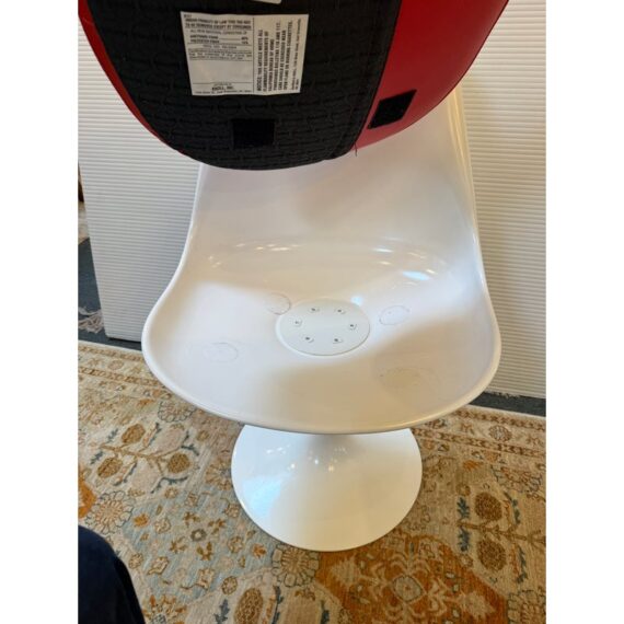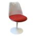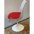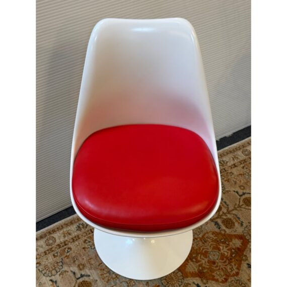 Design Plus Gallery presents the Eero Saarinen Tulip Swivel Side Chair from Knoll. The chair is designed and refined based on Eero Saarinen’s training as a sculptor. He created the tulip chairs a pedestal collection with the aspiration to eliminate legs found under chairs and tables. In collaboration with Knoll, he built a series of miniature models and full-size prototypes, iterating the design to create furniture that beautified an era. Seat shell is made of molded fiberglass with a white powdercoat over aluminized. The perfectly proportioned padded seat rest velcro’s in for stability and is in a well known red from the brand. Is in good condition for its usage. Made in USA.