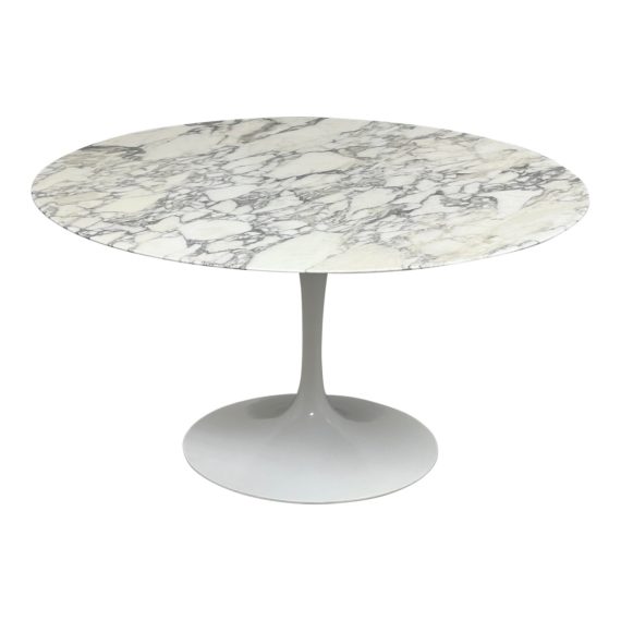 Eero Saarinen Tulip Dining Table 54inch Round Arabescato Marble. Original Price: $7,309