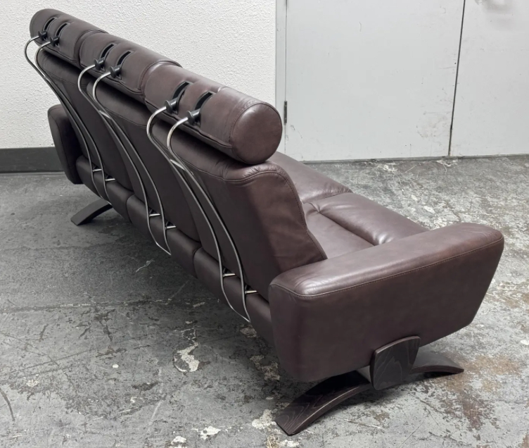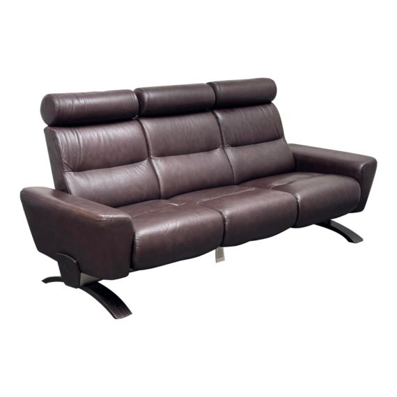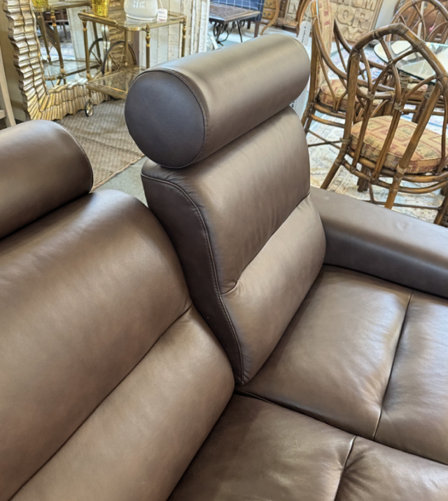 Design Plus Gallery presents the Julia Brown Leather Stressless Sofa by Ekornes. Stressless YOU Julia is part of a new collection from Stressless that combines exquisite design with the addition of quality and comfort . Clean Nordic lines and urban design feel, Stressless YOU Julia is of fine cocoa brown leather with adjustable headrests and individual seats that each recline on their own. This style, the YOU Julia, is a discontinued model. Minimal wear from use.