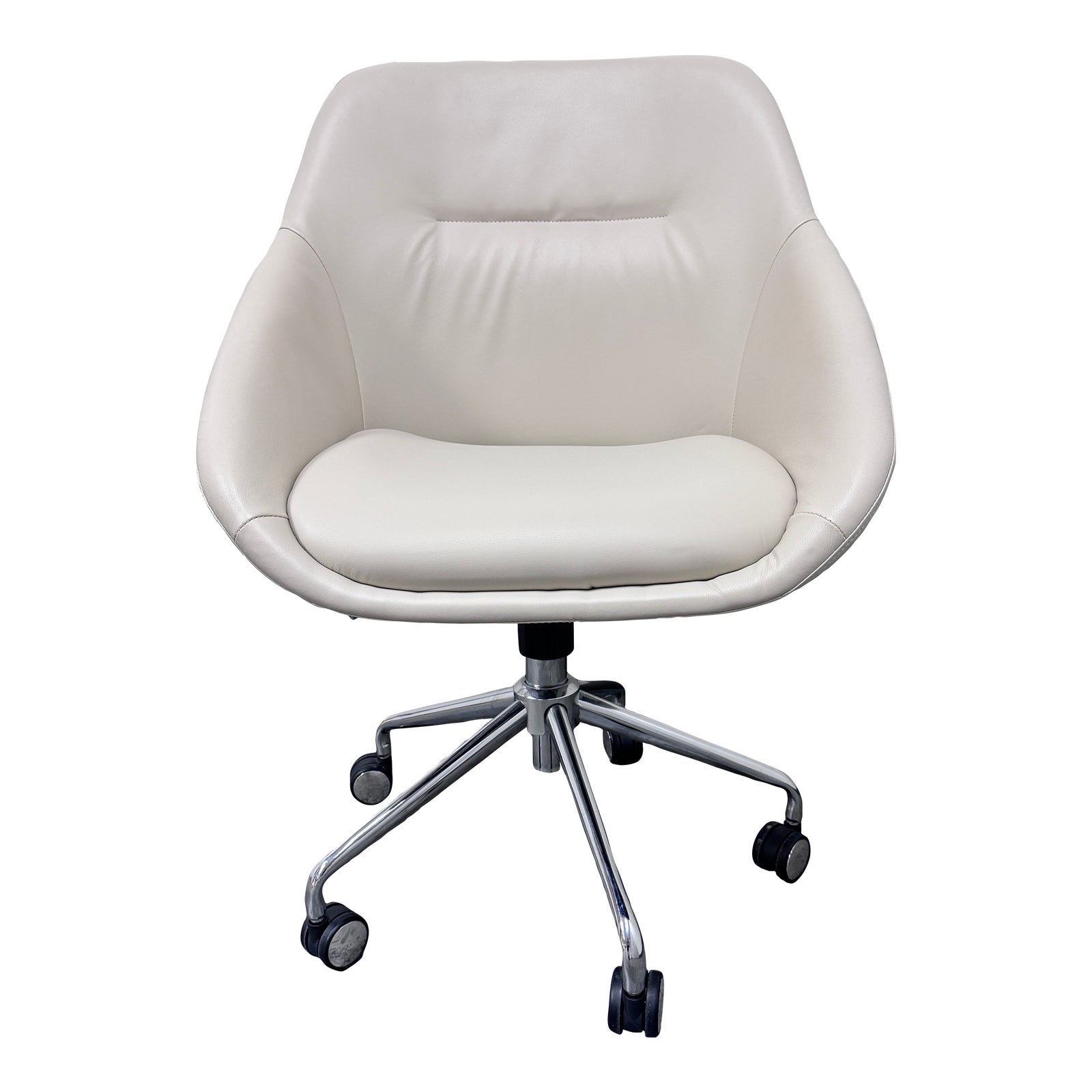 Design Plus Gallery presents a White Bonded Leather Task Office Chair Designed by Elle Decor. The Elle Decor Taissy task chair combines durability with upscale appeal, while the chrome 5-star base provides contrast and stable support. The 360-degree swivel design makes it easy to multitask without moving. This Elle Decor Taissy task chair has one-touch pneumatic seat-height adjustment for pairing with desks and countertops. Is in good condition with minimal signs of wear.