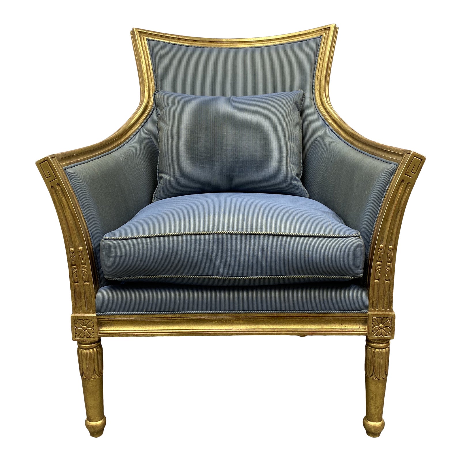 Empire Style Gold Leaf Arm Chair + Blue & Green Silk
