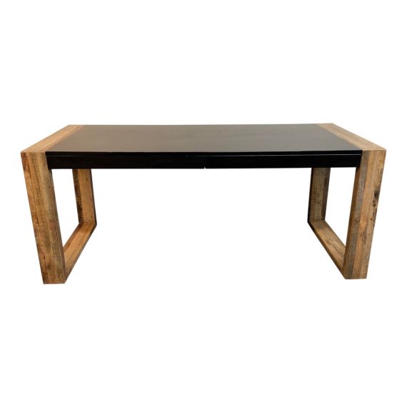 Design Plus Gallery presents the Salvadore Desk by Environment Furniture. Sleek ebony finished desk surface is bookended with natural reclaimed squares. The contemporary style, with organic mojo, has a pair of shallow drawers on one side.