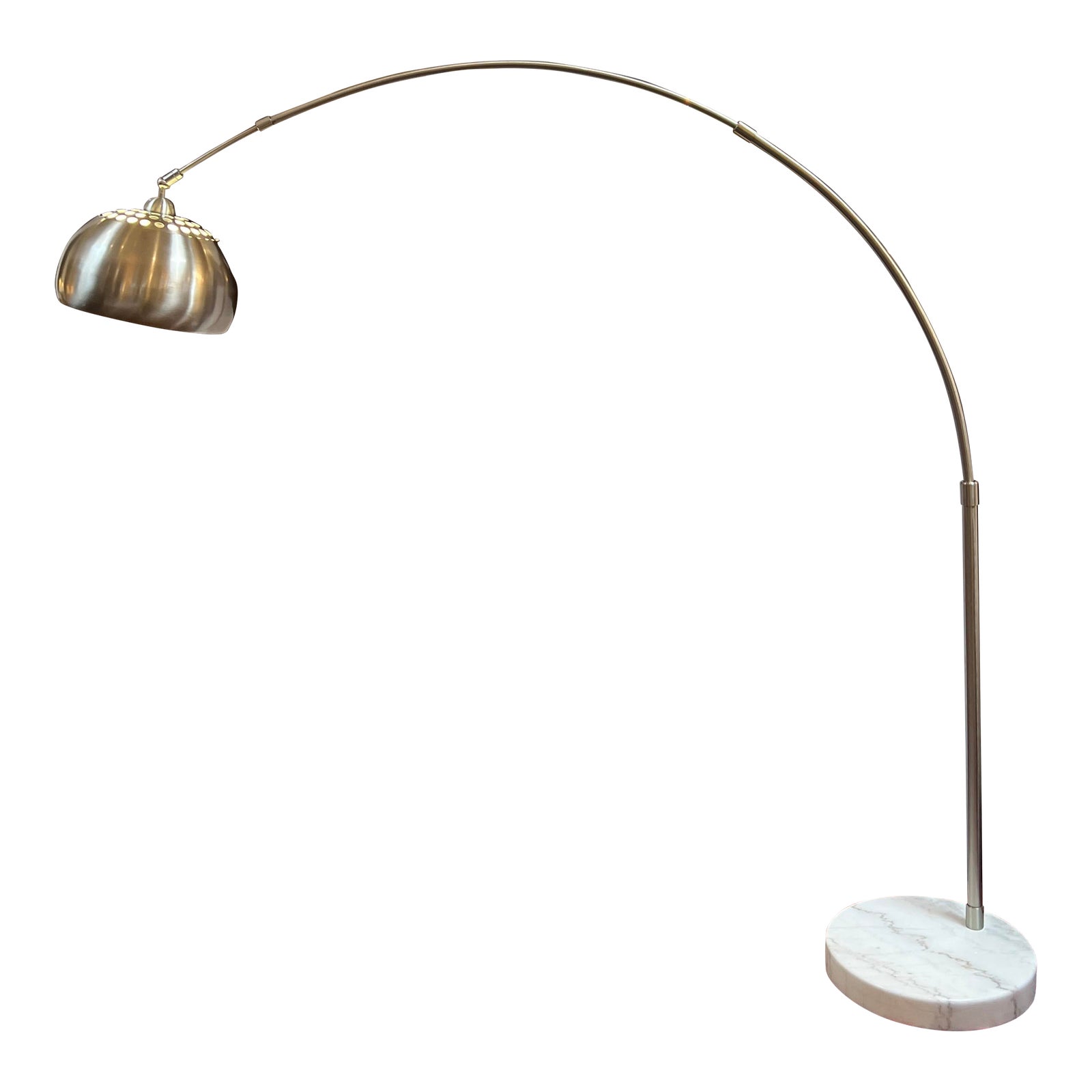 Design Plus Gallery presents the Cast Arc Floor Lamp by EQ3. This lamp has a solid marble base and metal shade. The shade can swivel and the telescoping arm is retractable, so you can place it wherever you need it. Minor wear from usage.
