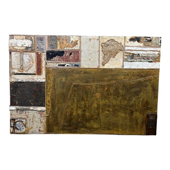 Design Plus Gallery presents an Original Painting by Erik Nelson. Moody and demanding, the large scale work is geometric and highly tetxtured. Signed and dated 2010 on back of canvas, as shown. Good condition.