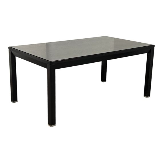 Design Plus Gallery presents an Extension Dining Room Table. Simple design theory with the addition of two extending leaves to add space for guests or service. The table has a rich expresso mahogany finish and straight narrow legs. Both leaves easily slide out to extend an added three feet!